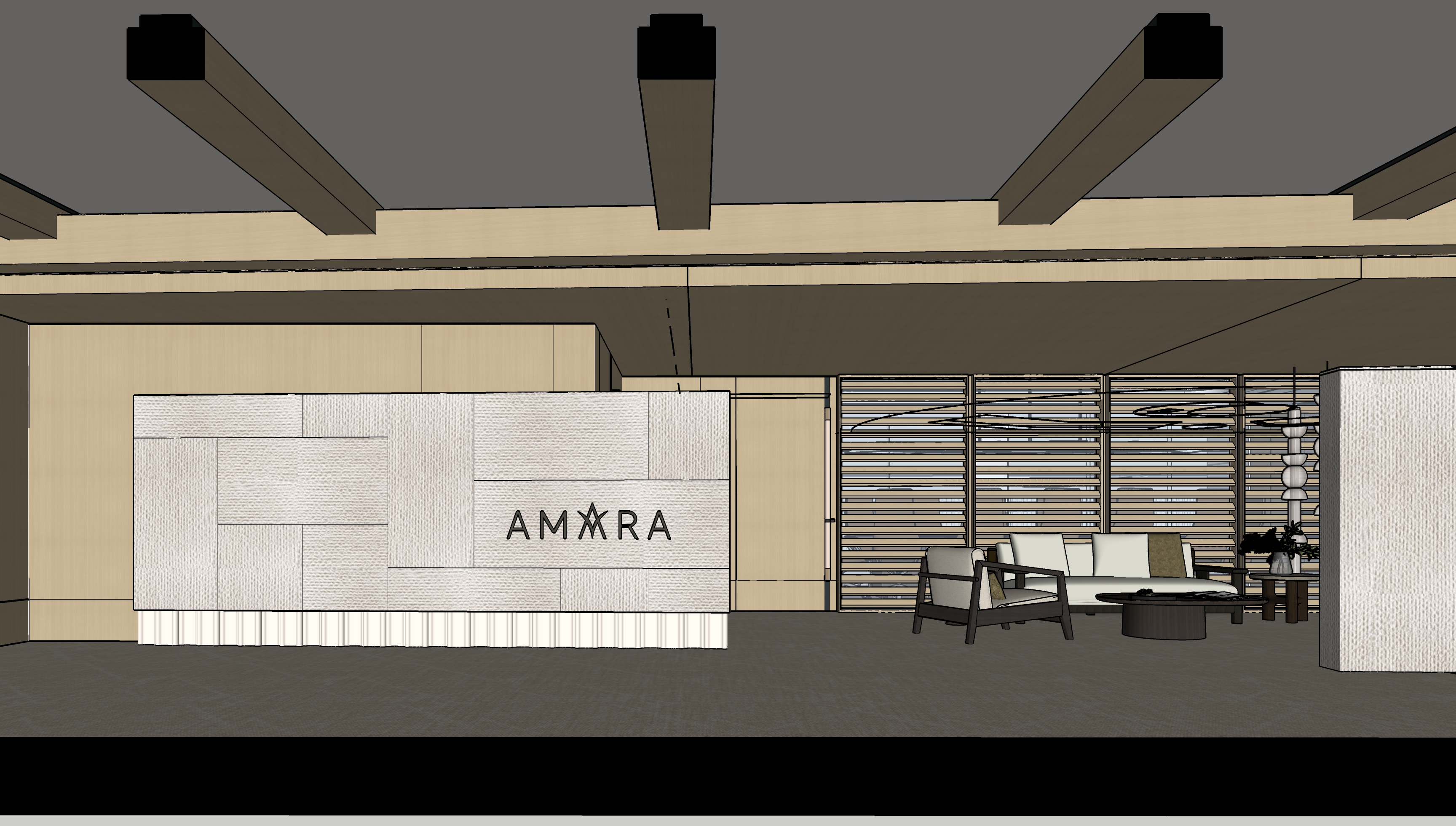 help me render the image maintaining the colour of the materials and tones of it this is an fully indoor space there will not be any sunlight entering