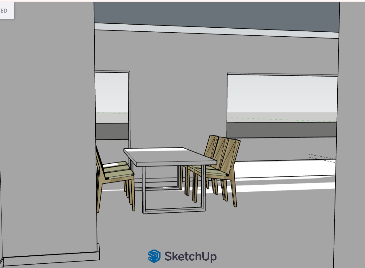 above this table put stockholm 2025 ikea ceiling light in front of the table are two balcony doors antracit on the balcony is half wall and half glass fence there is also wooden floor
