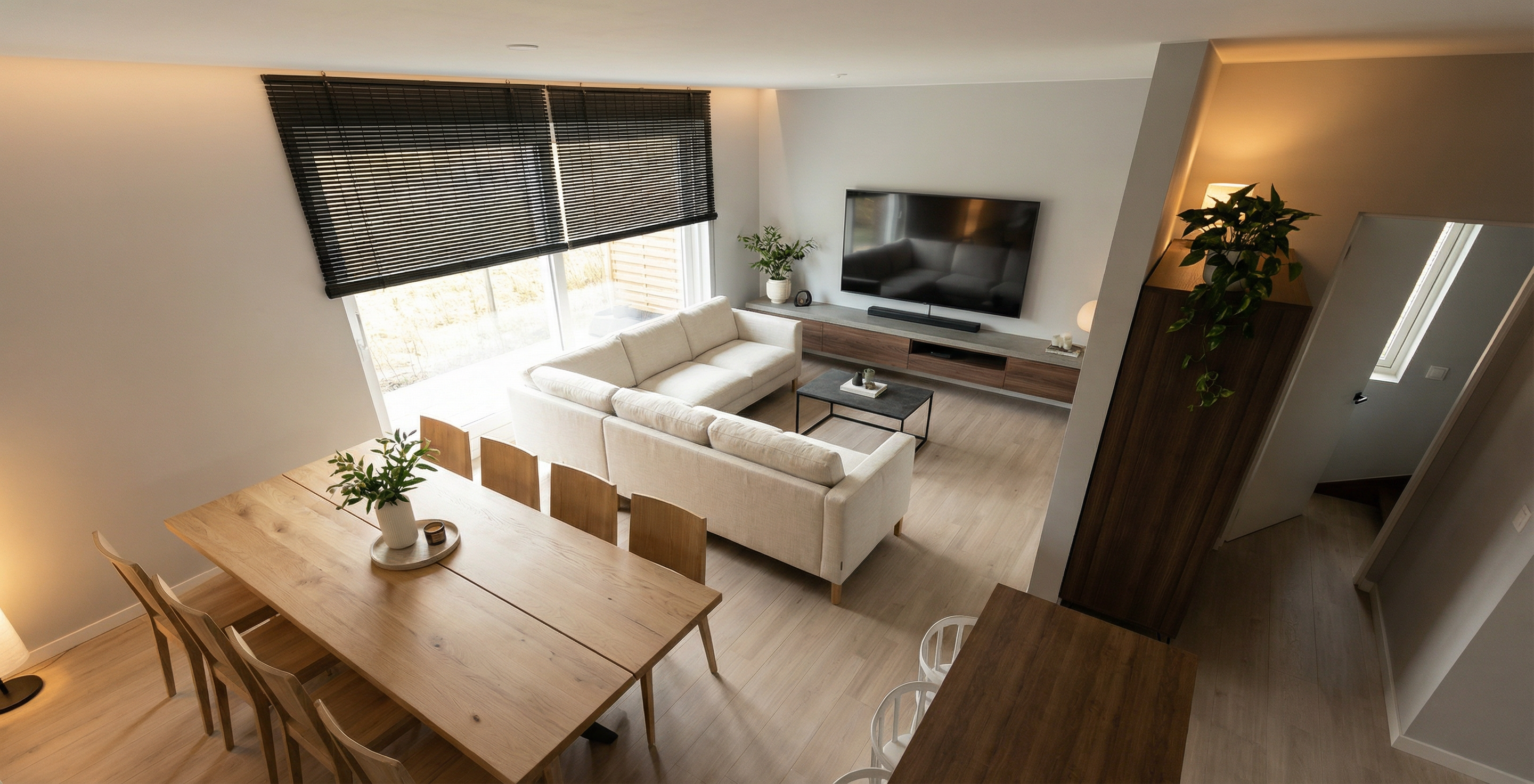 transform this visualization into a rich dramatic sunset atmosphere golden hour preserve all materials textures and layout exactly enhance low angle warm light creating elongated shadows and golden reflections on walnut wood velvet and patinated brass introduce subtle decorative lighting e g wall sconces hidden uplights or accent lamps where it enhances depth and drama the goal is to create layered light strong contrasts and visually striking highlights while keeping the space elegant and atmospheric focus on light as a storytelling element without changing materials or furniture