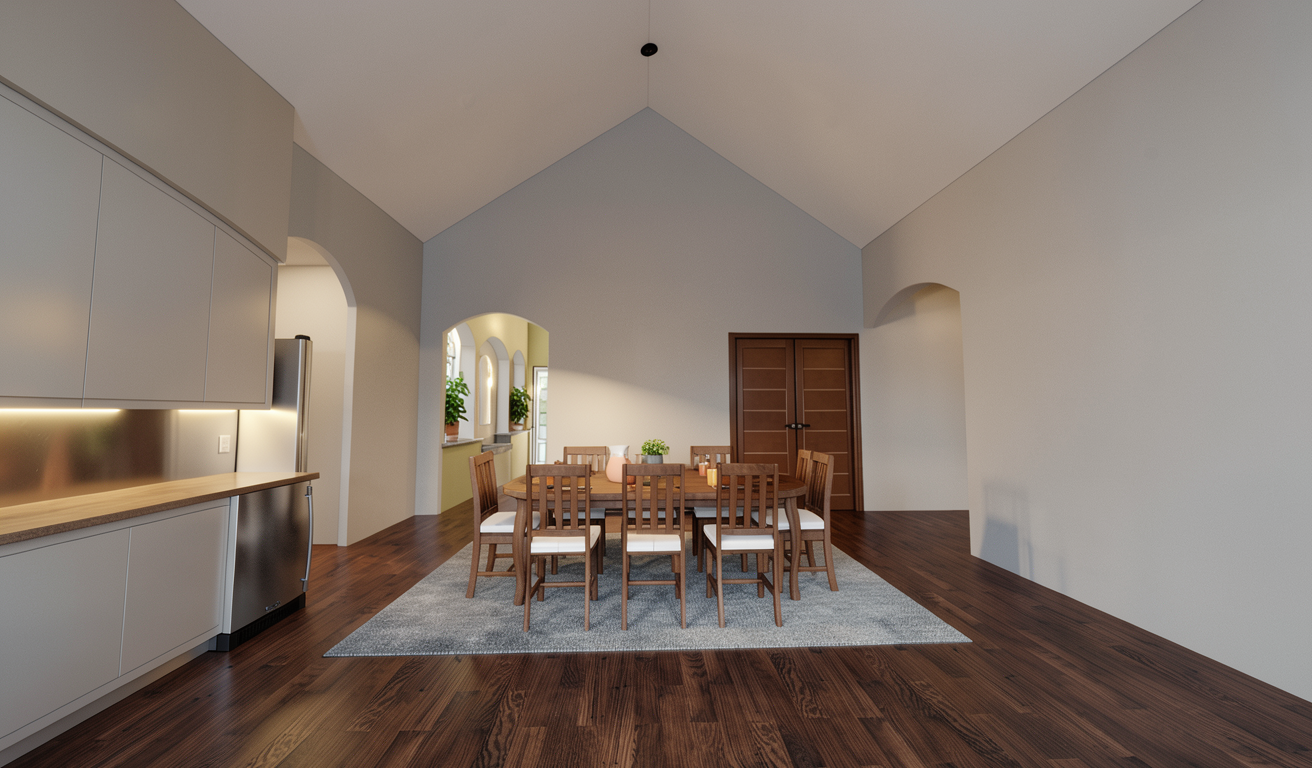 add a surface mounted sliding door system into the room shown a worker is opening it showing views into the room