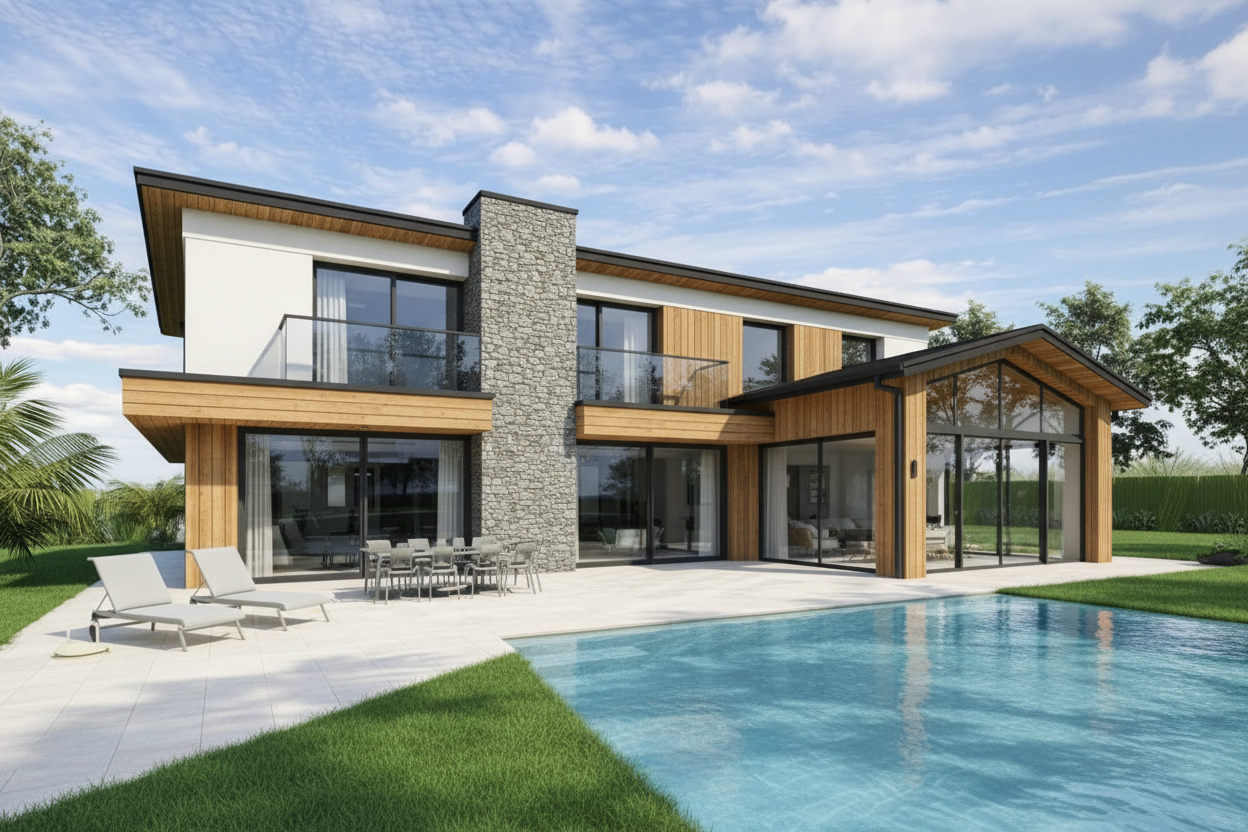 voer een fotorealistische optimalisatie uit van deze render zonder enige wijziging aan het architectonisch ontwerp de geometrie verhoudingen indeling of positionering van elementen het ontwerp moet exact behouden blijven verbeter uitsluitend het realisme materiaalgebruik en detaillering glas maak het glas volledig fotorealistisch met natuurgetrouwe reflecties van de omgeving voeg correcte transparantie en dieptewerking toe zorg voor subtiele vervorming in reflecties zoals bij echt hr triple glas toon een realistisch ingericht interieur zichtbaar door het glas met moderne meubels sfeervolle warme verlichting 2700k 3000k indirecte verlichting en natuurlijke lichtverspreiding materialen texturen verbeter alle texturen naar hoogwaardige realistische pbr materialen voeg fijne details toe zoals subtiele oneffenheden reli f reflectiewaarden en natuurlijke veroudering waar passend vervang waar nodig generieke texturen door realistische materialen met correcte schaal en natuurgetrouwe mapping dak realiseer dakpannen zoals gebruikelijk geplaatst in nederland correcte overlap en verband realistische gevelpannen aan de randen nauwkeurige nokvorsten met juiste aansluiting correcte detaillering bij kilgoten en aansluitingen flora omgeving verbeter beplanting naar realistische nederlandse flora voeg natuurlijke variatie toe in kleur bladstructuur en dichtheid realistische grasstructuur met hoogteverschillen subtiele natuurlijke imperfecties licht sfeer fotorealistische daglichtsimulatie met natuurlijke schaduwen correcte globale belichting gi realistische reflecties en omgevingslicht cinematische maar natuurgetrouwe uitstraling belangrijk geen ontwerpwijzigingen geen aanpassingen aan volumes kozijnindeling dakvorm gevelopeningen of terreinindeling alleen visuele en materi le optimalisatie naar hoogwaardig fotorealisme