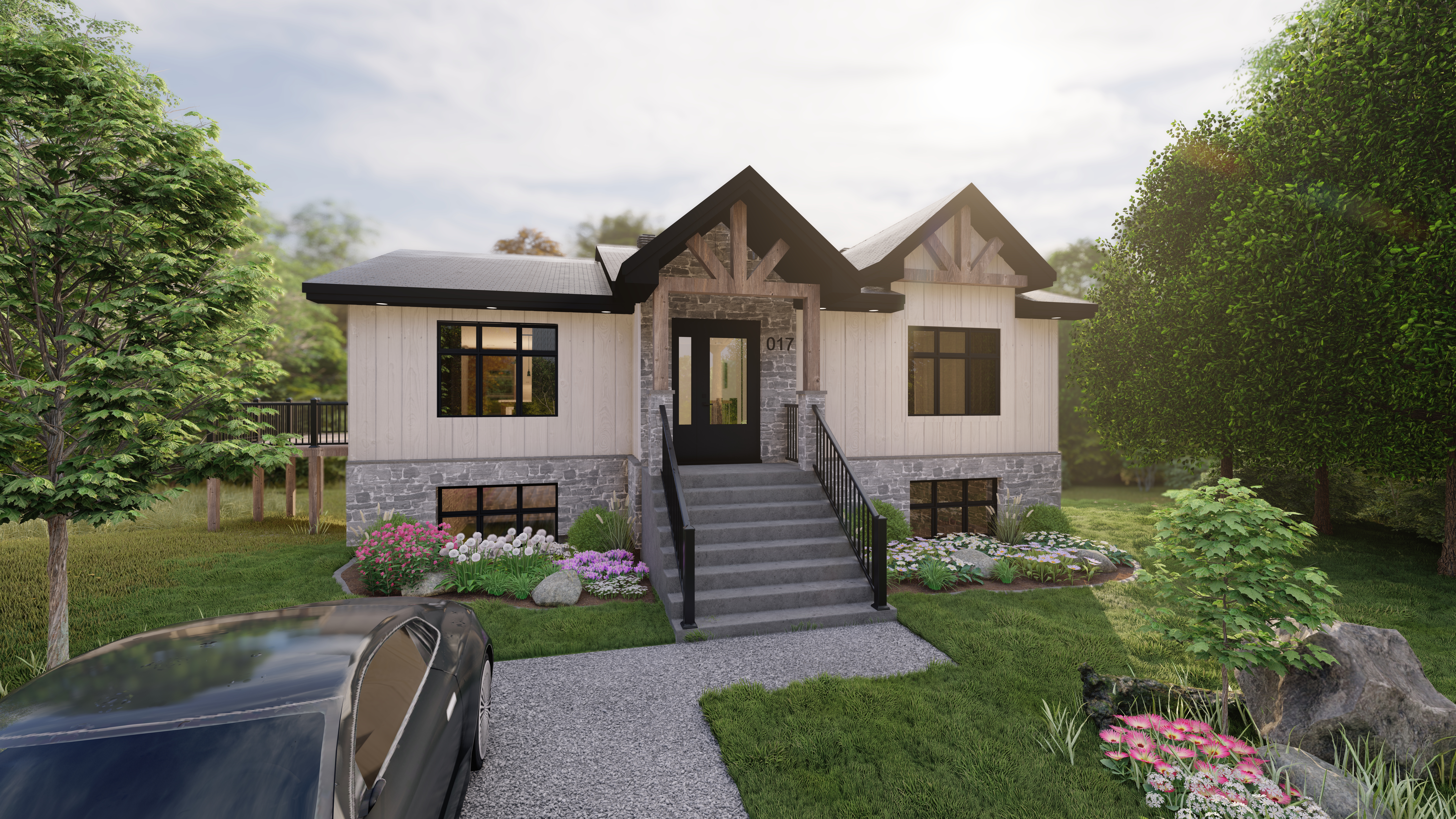 modernist exterior shot exterior shot varied light and dark woods mountain modern materials winter scene in dense pine forest preserve grade architecture architecture