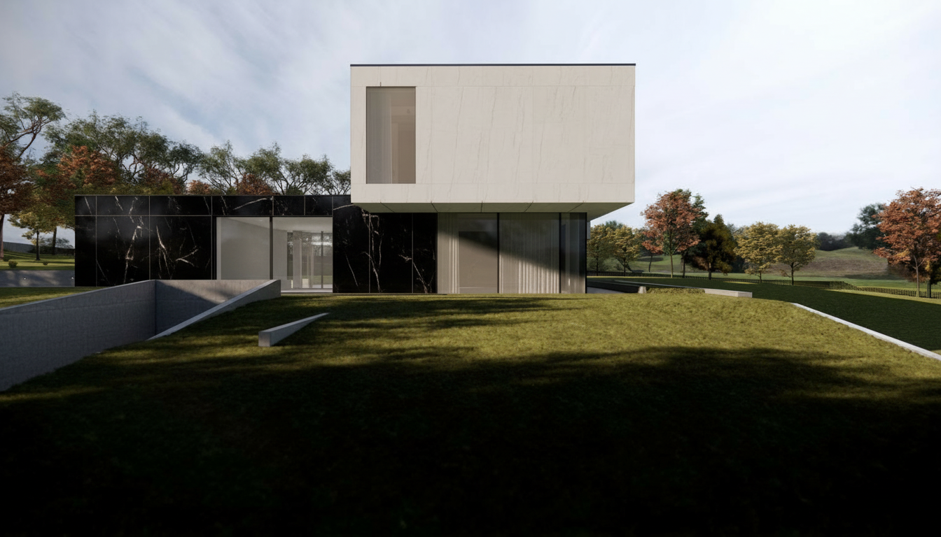 modernist exterior shot render a modern stair with bright wooding flooring and modern lights bright colors beige and white architecture