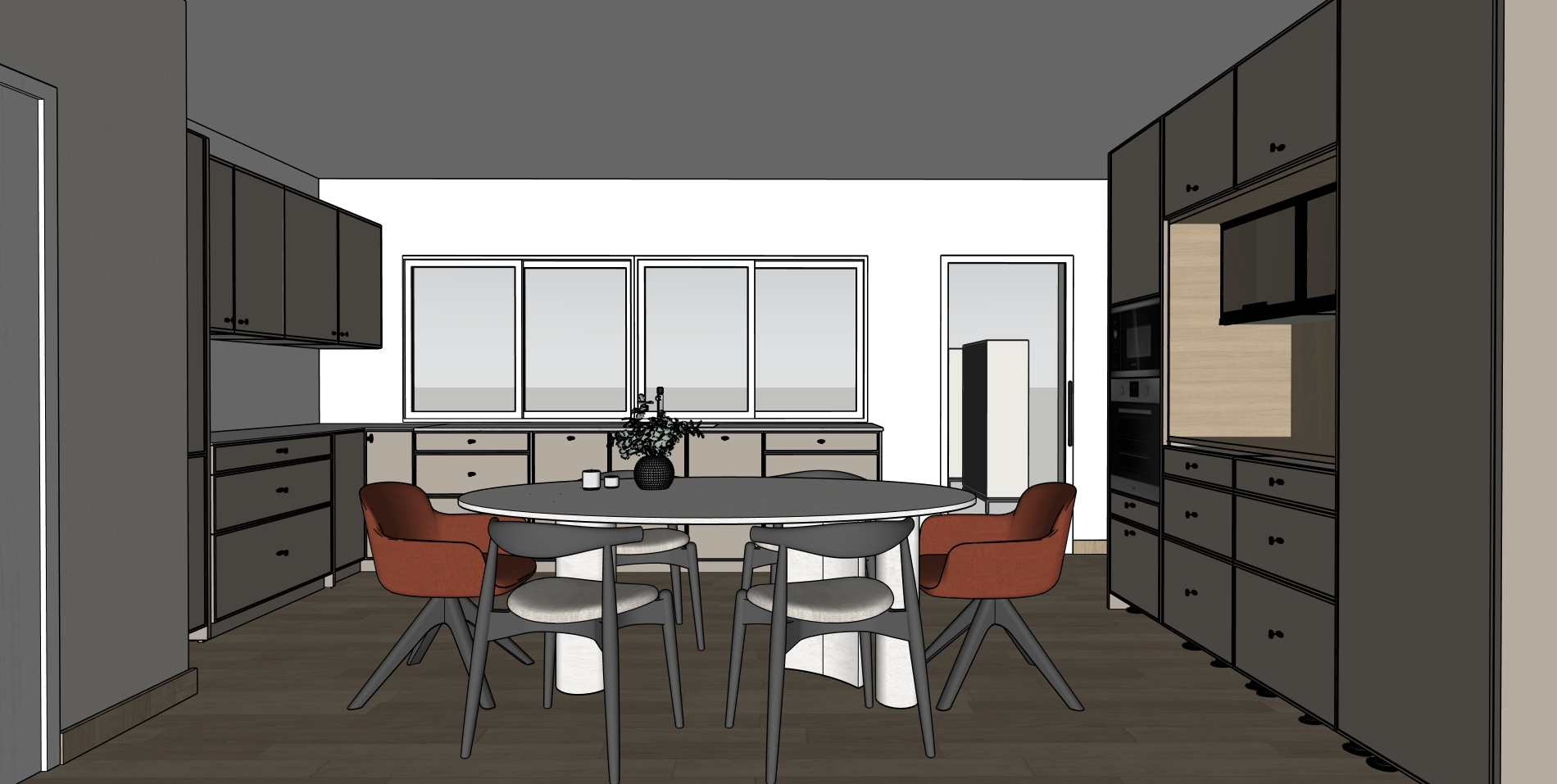 crea una imagen fotorrealista a partir de este sketchup que la imagen sea mas real las ventanas dan a un patio de casa