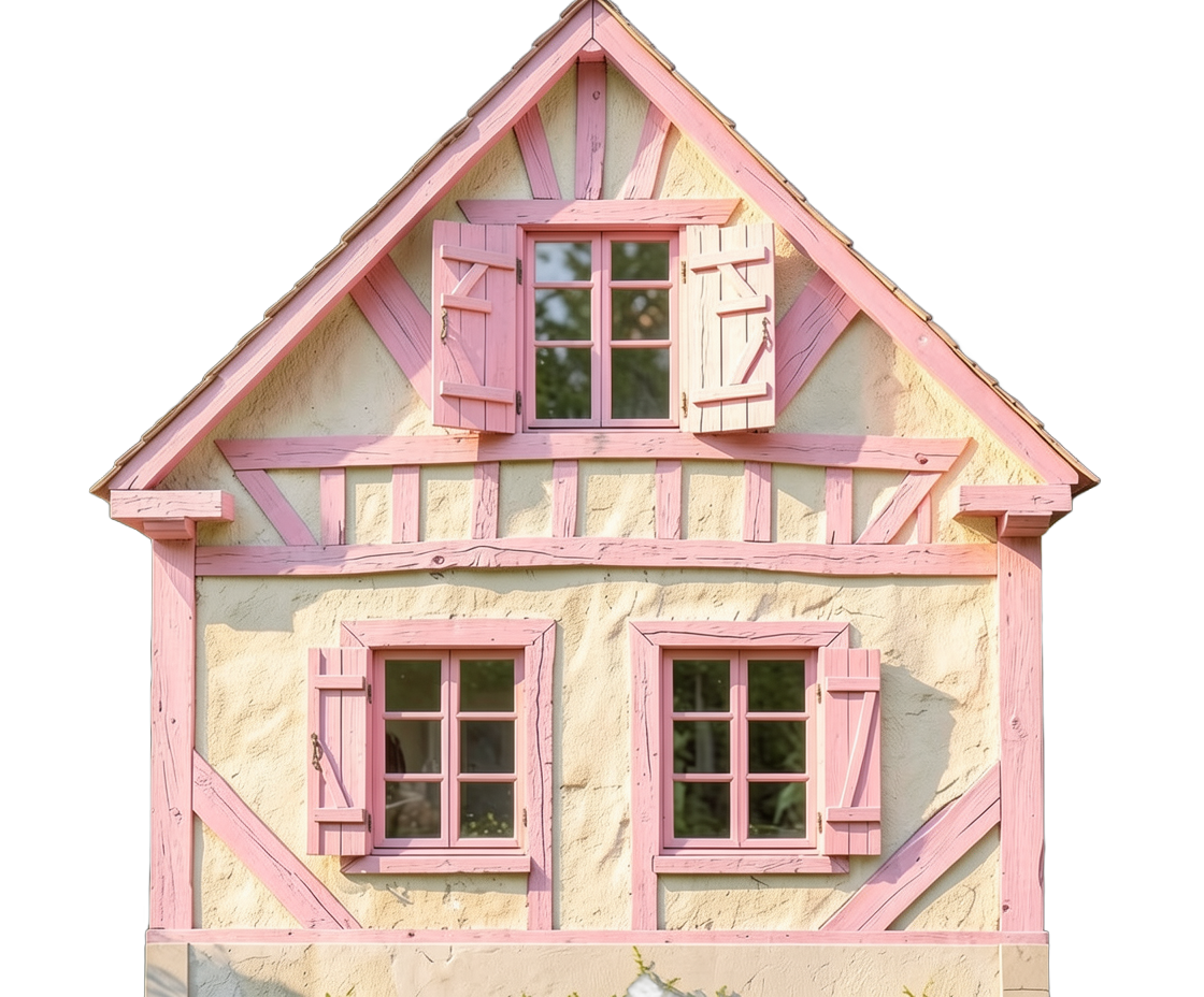 make the buding material brick insted of a stucko facd and keep the pink woden welments