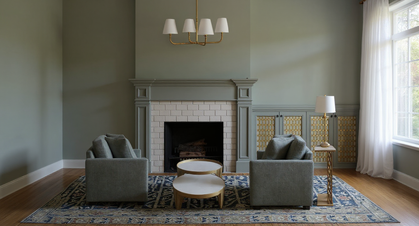add four floating shelves on the right side of the mantel above the cabinet make the drywall on the left white add artwork above the mantel add open archway to left side of fireplace