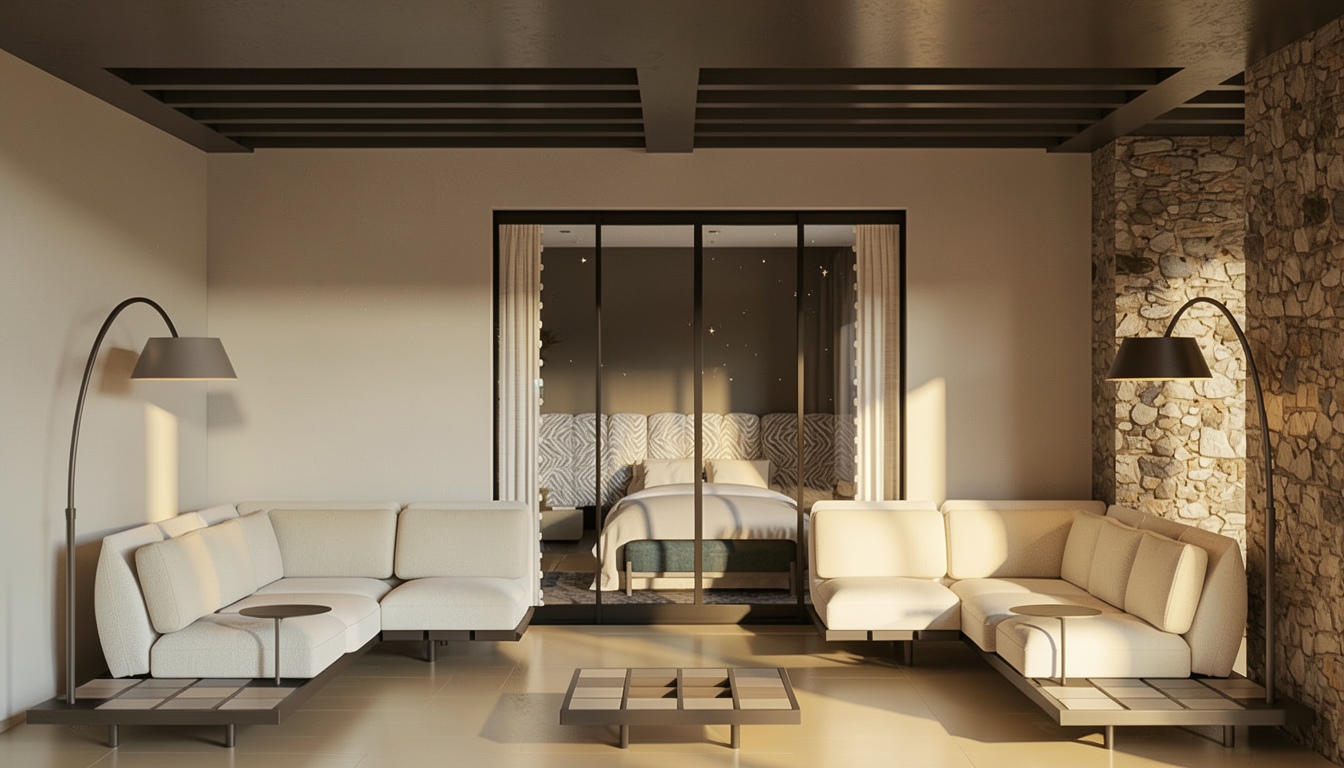 preserve the architecture structure lighting and camera angle of the original image exactly do not modify the house windows doors outdoor kitchen or patio structure landscape style modern luxury landscape design with clean architectural geometry layered planting and resort level outdoor living outdoor living features outdoor dining zone near the outdoor kitchen luxury lounge furniture inspired by rh outdoor minotti outdoor lighting warm integrated landscape lighting 2700k path lights along walkways tree uplighting subtle wall grazing lighting along the house materials palette natural stone honed limestone warm concrete gravel joints white oak accents brushed bronze fixtures color palette soft neutrals limestone sand warm gray natural greens white flowers mood elegant calm and resort like the space should feel like a five star luxury courtyard garden rendering style ultra photorealistic architectural visualization luxury real estate photography 35mm lens soft evening light realistic shadows high end residential magazine quality