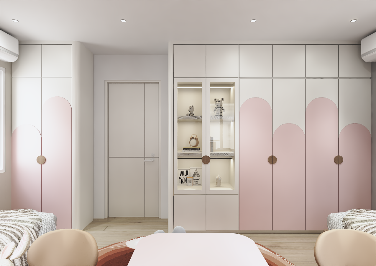 ubah warna dalam lemari kaca tembus menjadi pink muda