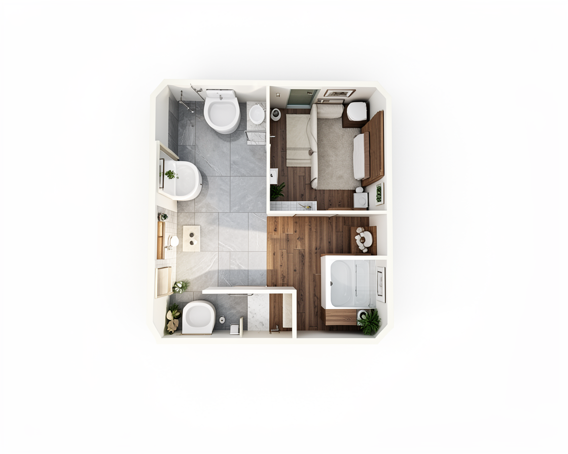 create a floor plan for the building wiith a bathroom and a therapy room