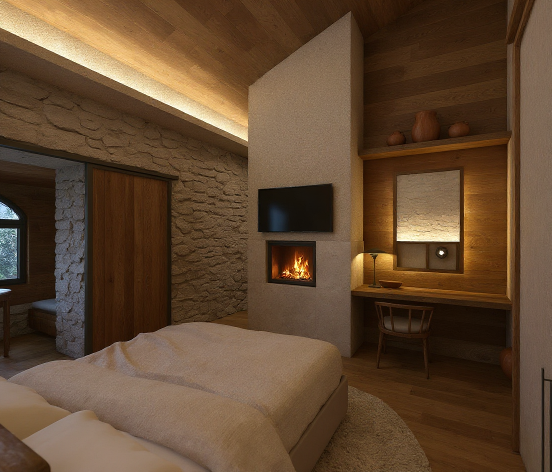 make the render more realistic turn on all the interior lights make the fire in the fireplace more realistic make the room brighter