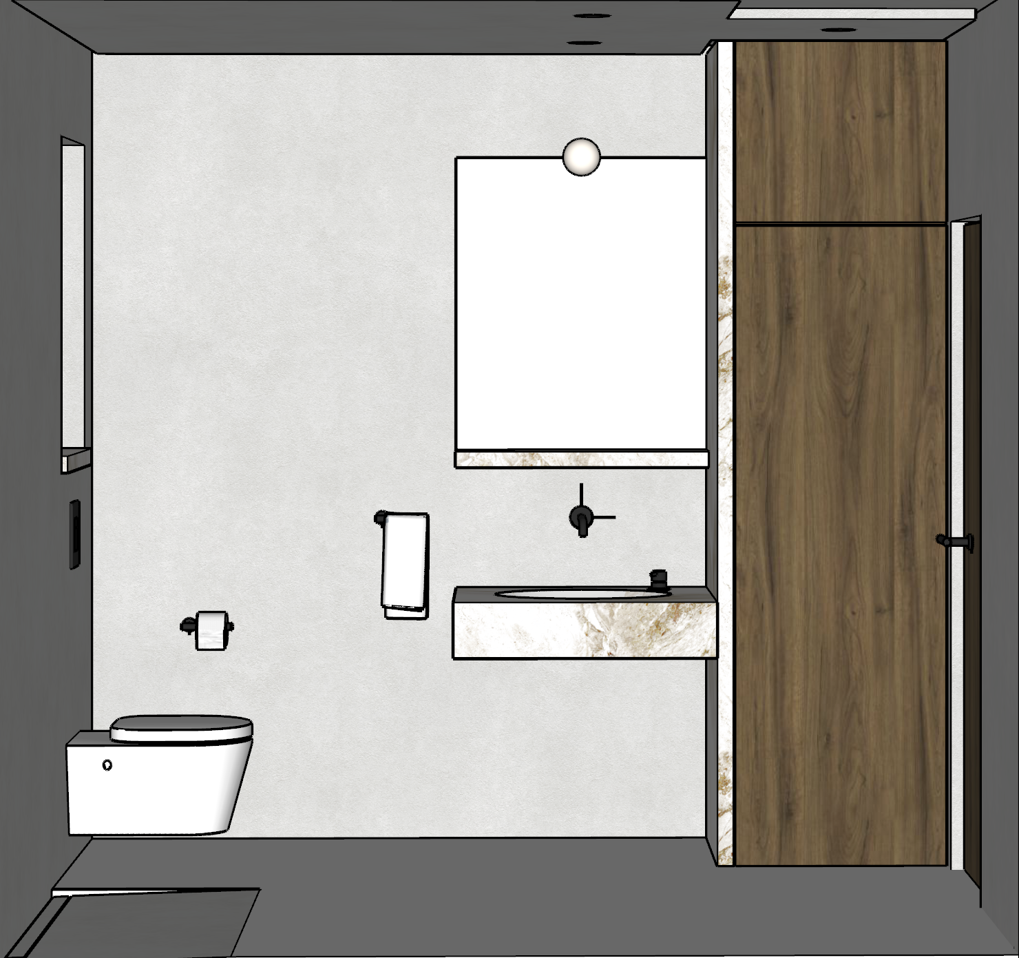 make it realistic with reflective mirror and microcement walls