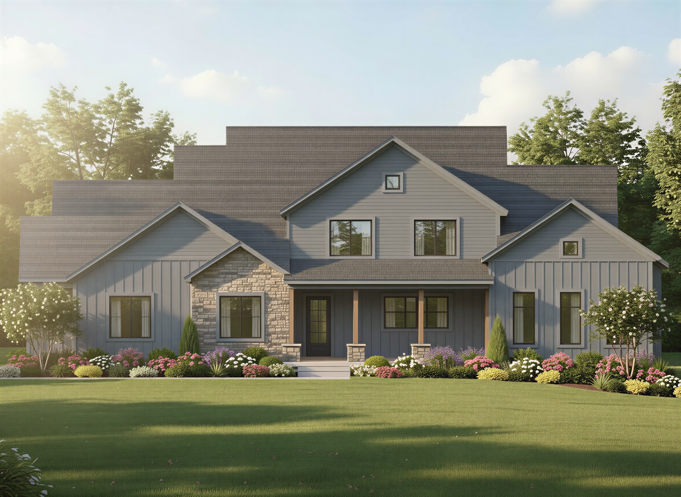 make this photorealistic add tall oak trees in the background lighten stone a bit