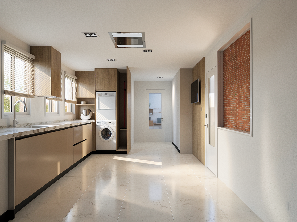place the image of a modern and discreet dining room in the window on the right