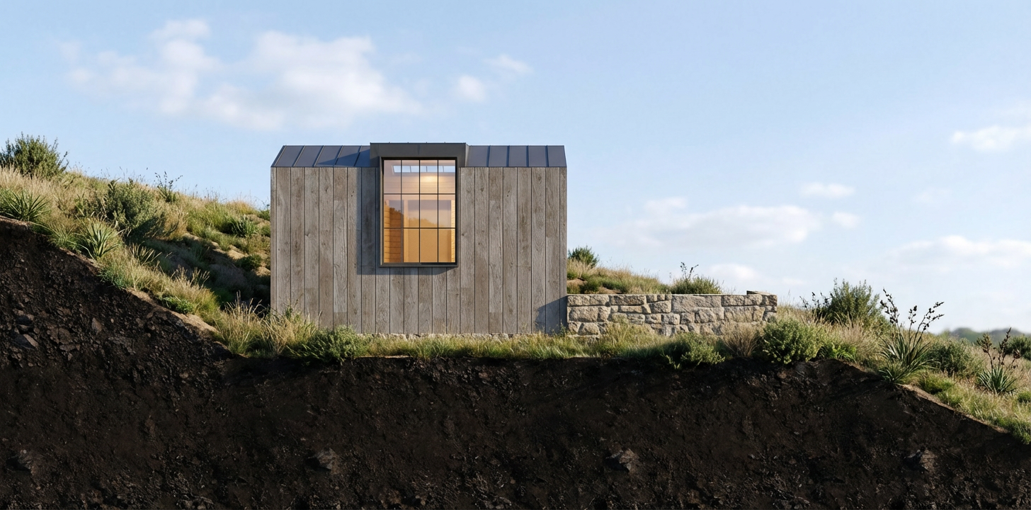 make a front elevation photorealistic as possible while keeping textures the same as shown lightly landscaped in a lightly wooded suburb of dayton oh nice lighting remove any text use the following finishes 626366 horizontal siding 626366 trim white windows terra cut flintridge provia stone colonial slate certainteed dimensional shingles charcoal metal roof d4d0c9 smooth 2 panel front door with two 5 lite sidelights 432f24 posts