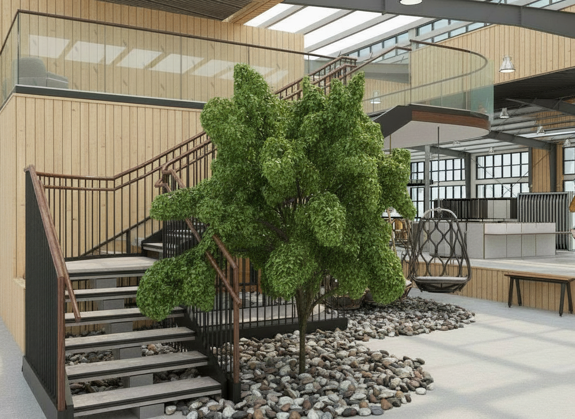 remove the branches falling into the stair railing make the stringer underneath black