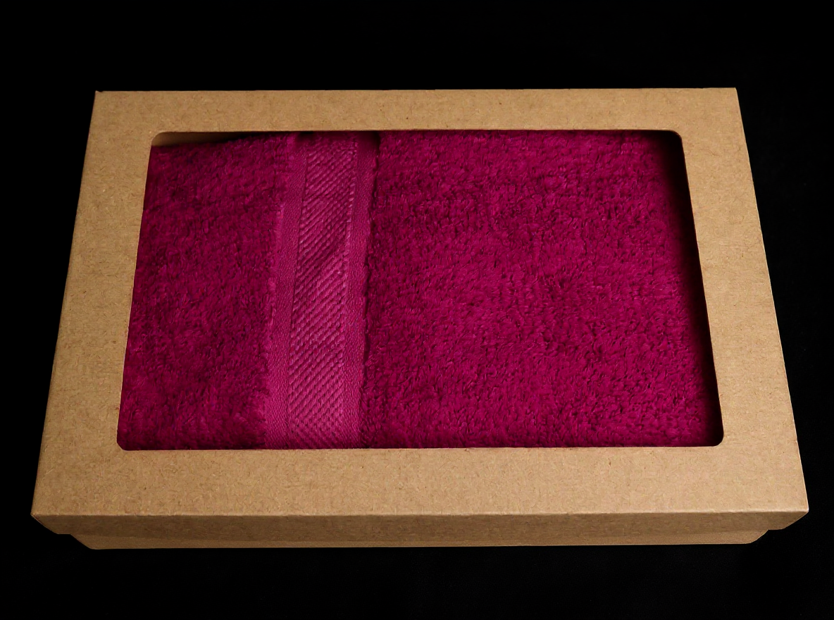 change the color of the terry towel int the box to a aubergine color everything else stays the same do not change the texture of the box and the towel do not change the color of the box