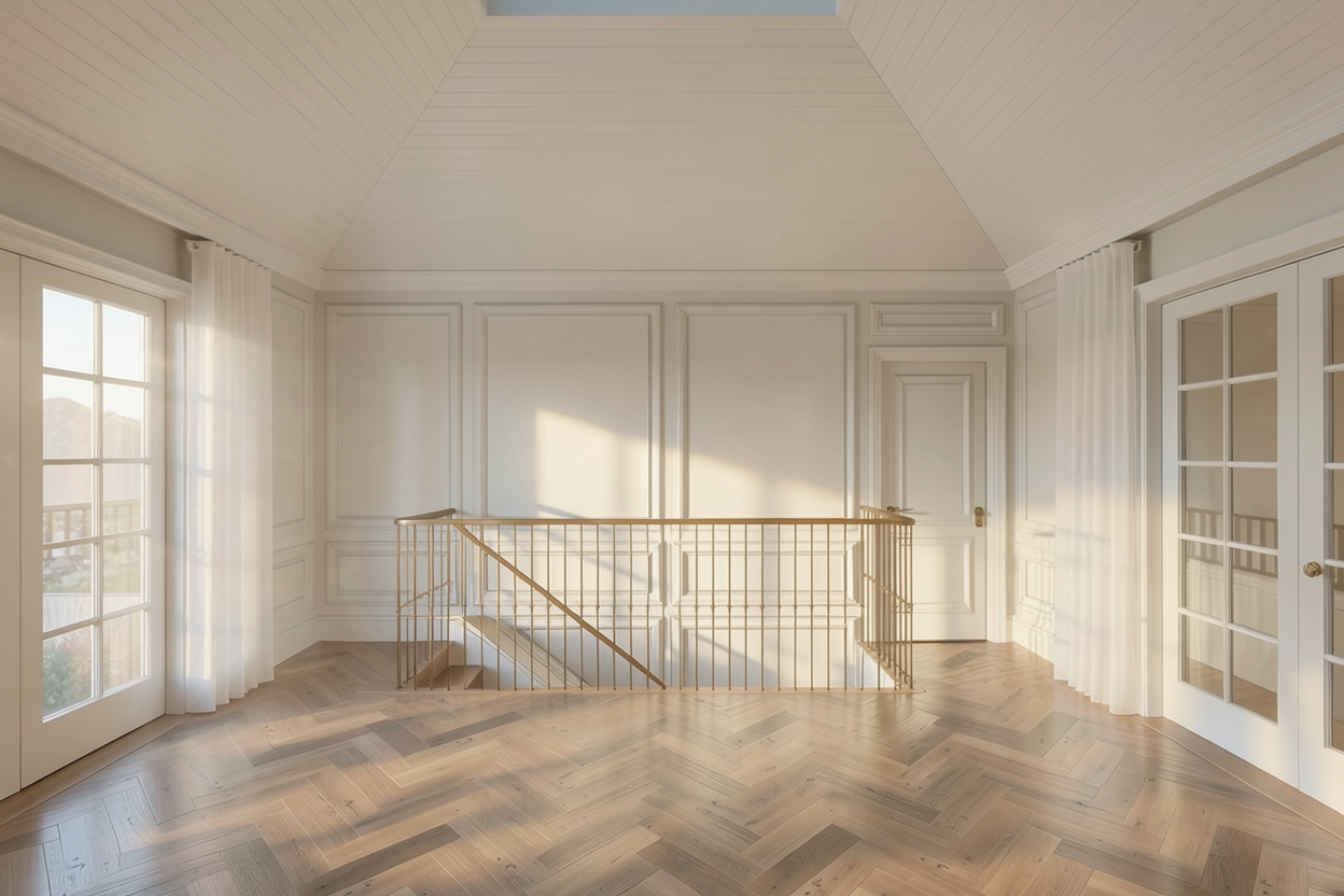 bring life to this rendering with elegant details that fit the feeling of a moody library like bar keep the white wall on the right the same keep the flooring light oak add more bar accessories add a dark olive green area rug in the bottom of the scene