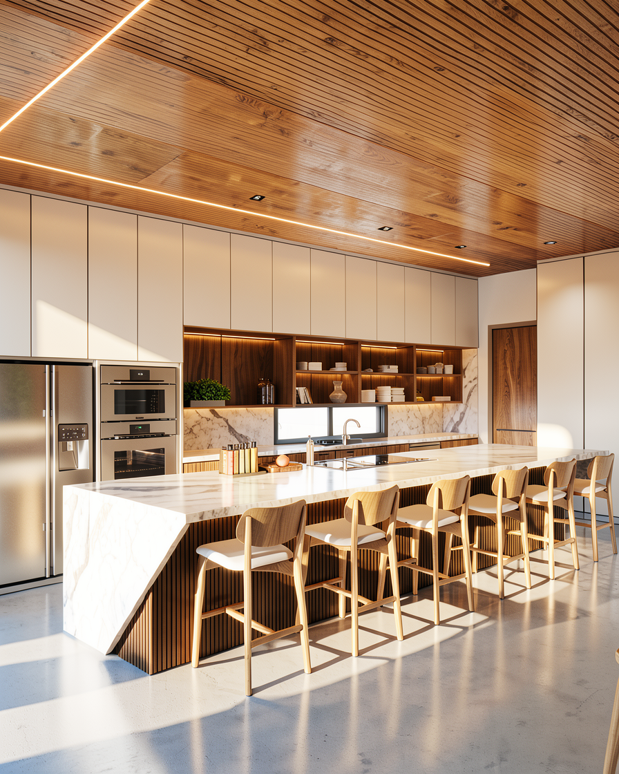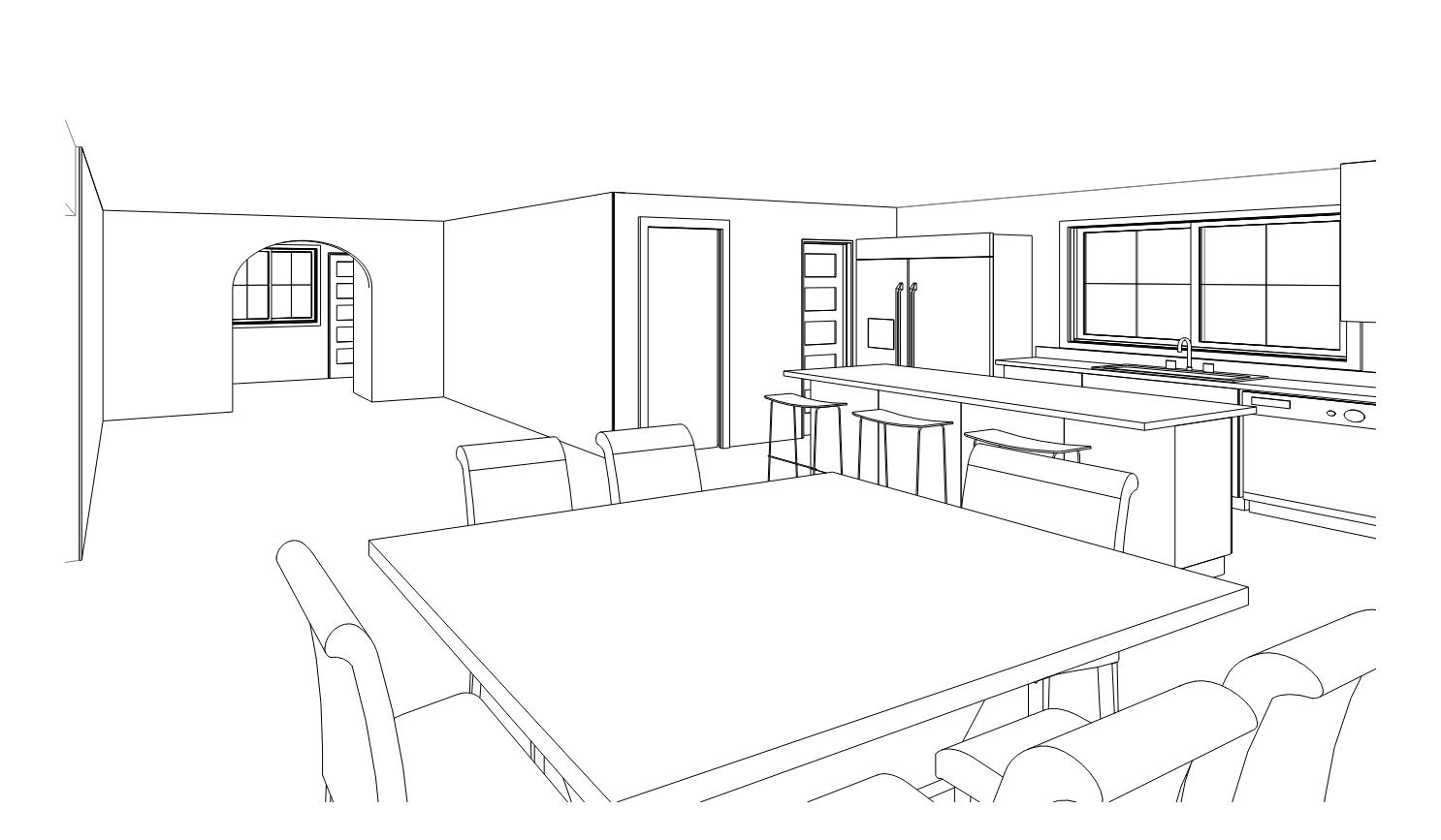 render it with modern finish materials but all walls and outline remains the same add furniture for small formal living room at that arch shape entry