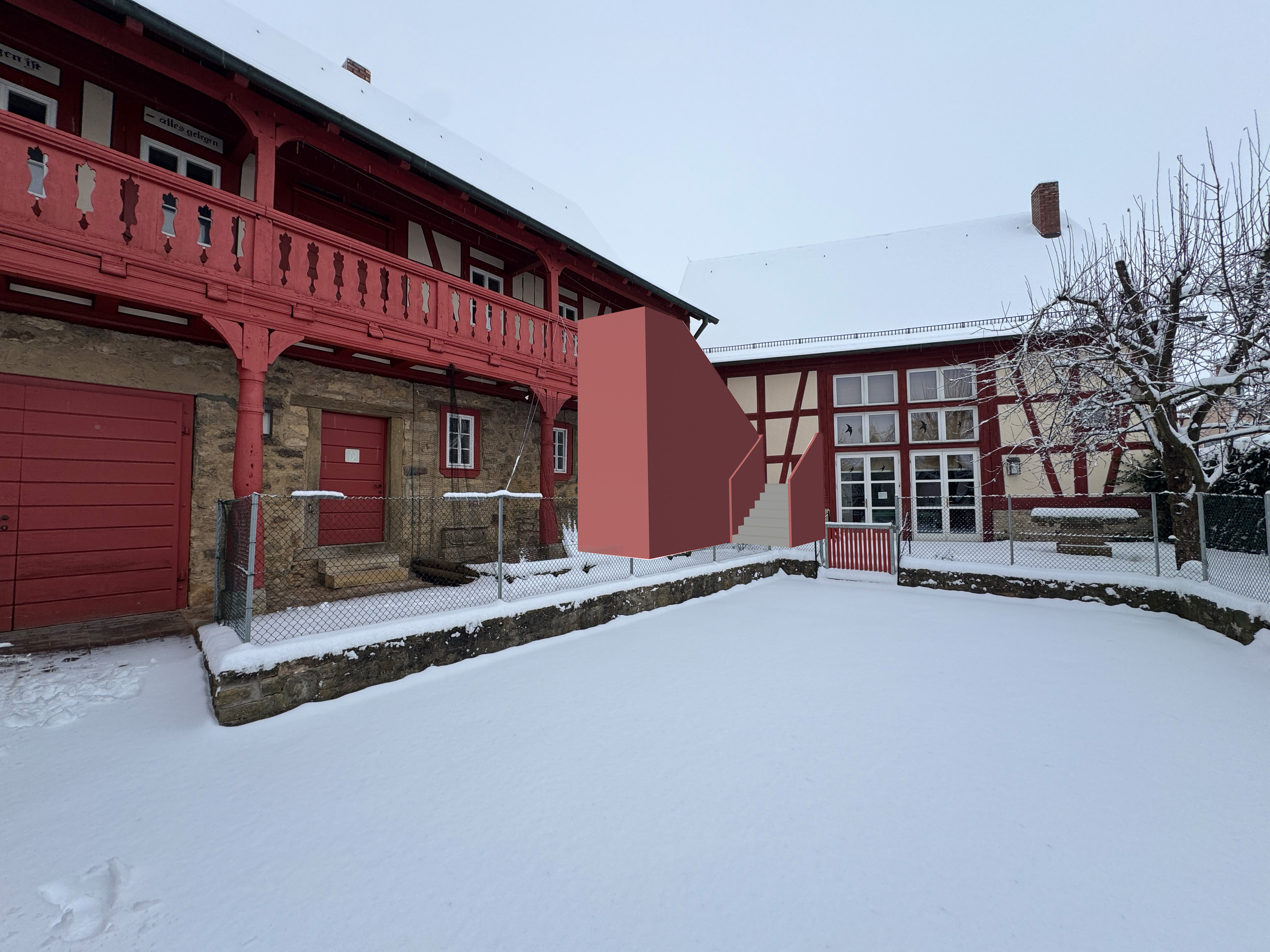 entferne den maschendrahtzaun im bild