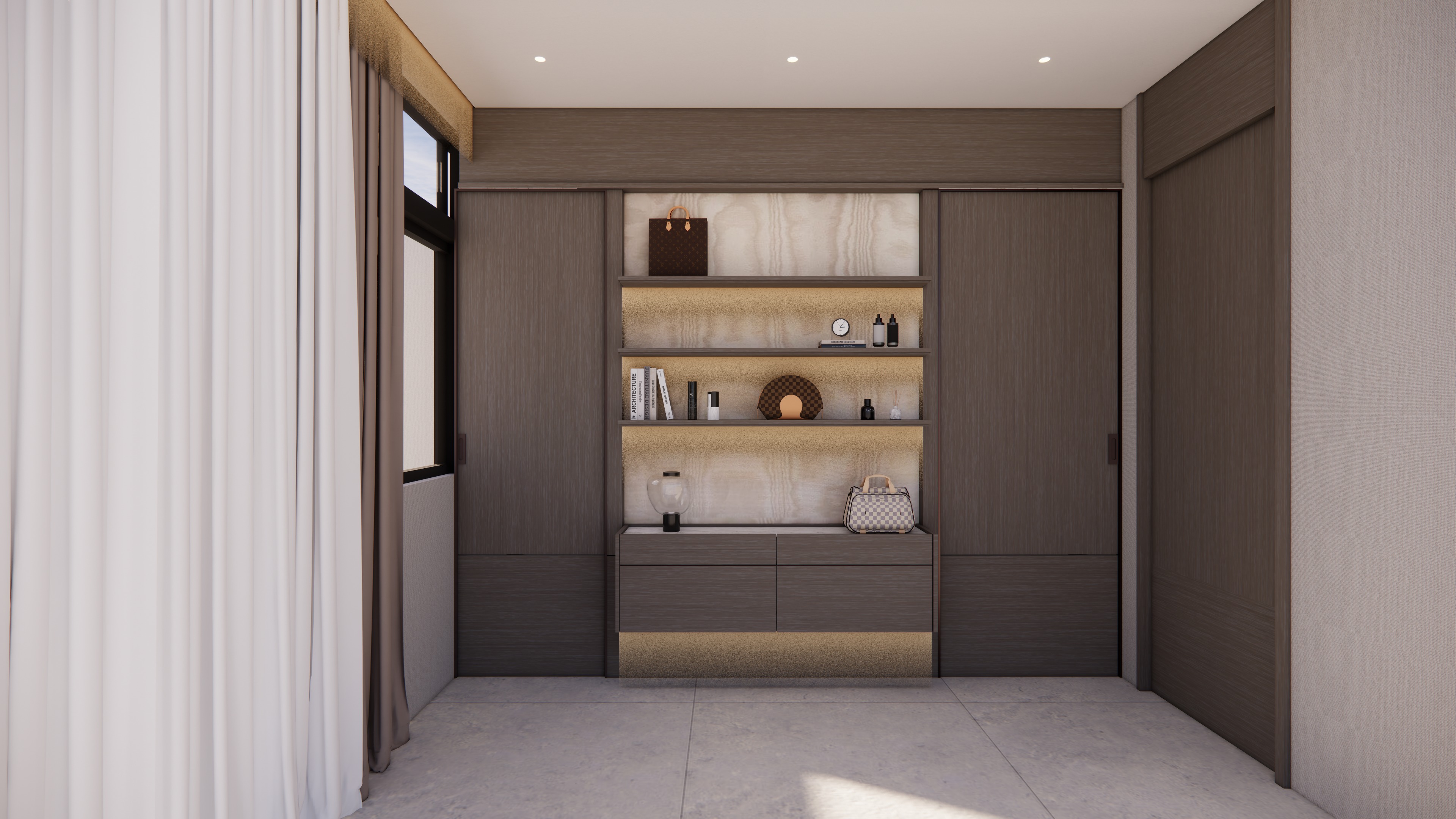 remove the side table and table lamp at the right corner only do not remove or change any other furniture or lighting elements ensure the timber pattern variation looks natural and not repetitive set the overall room lighting atmosphere to approximately 4500 lux bright and comfortable increase the brightness of the door timber slightly while keeping the original timber texture and material unchanged make the door entrance area brighter to clearly define and highlight the entry space do not change the overall design intent layout camera angle or material proposal maintain all original materials and finishes exactly as provided enhance realism through balanced lighting accurate shadows and natural looking material rendering only produce a clean professional photorealistic architectural render
