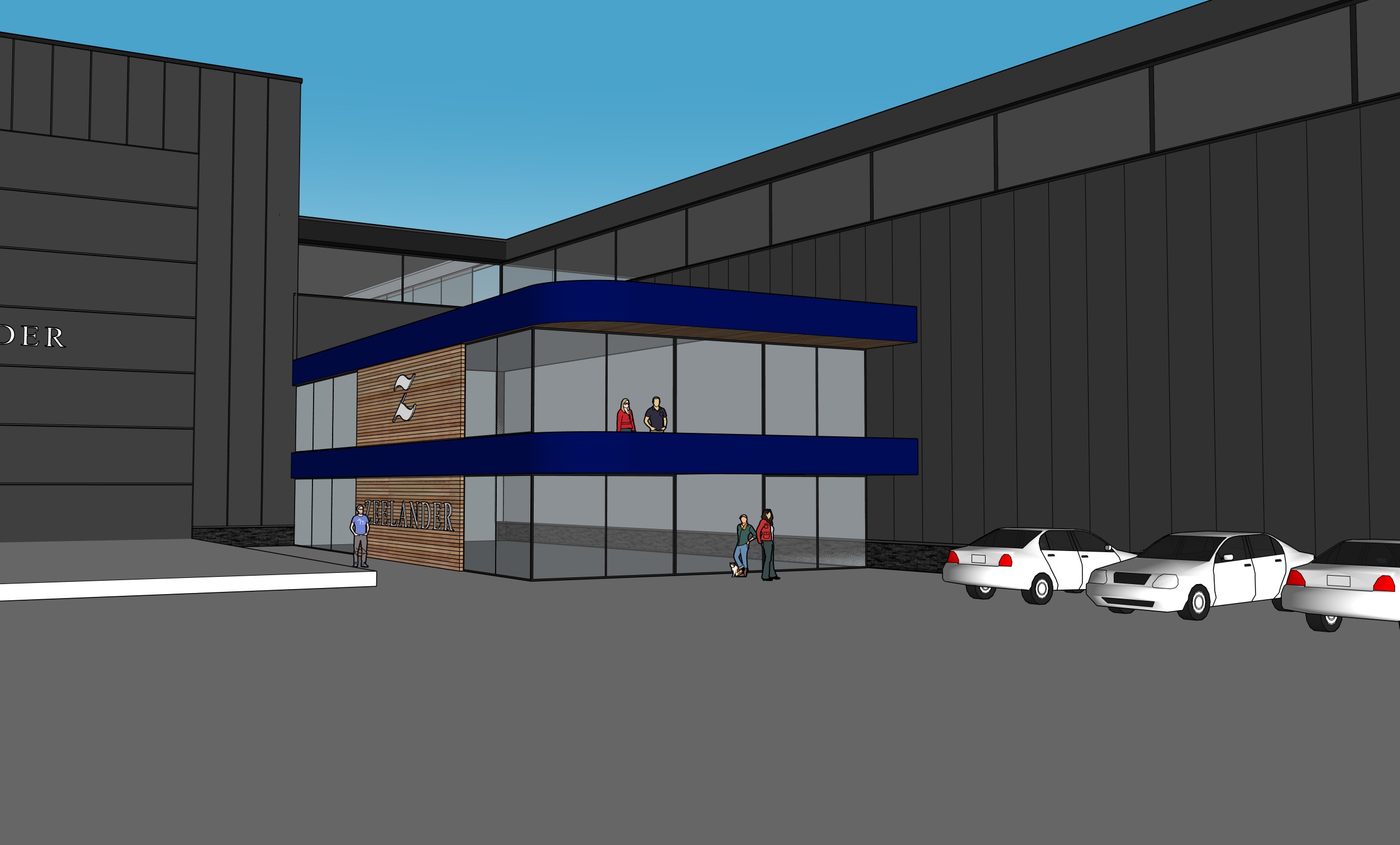 the weather is sunny with a few clouds make the cars and boats look realistic keep the materials and colours of the buildings exactly the same as in the original add some people around the buildings