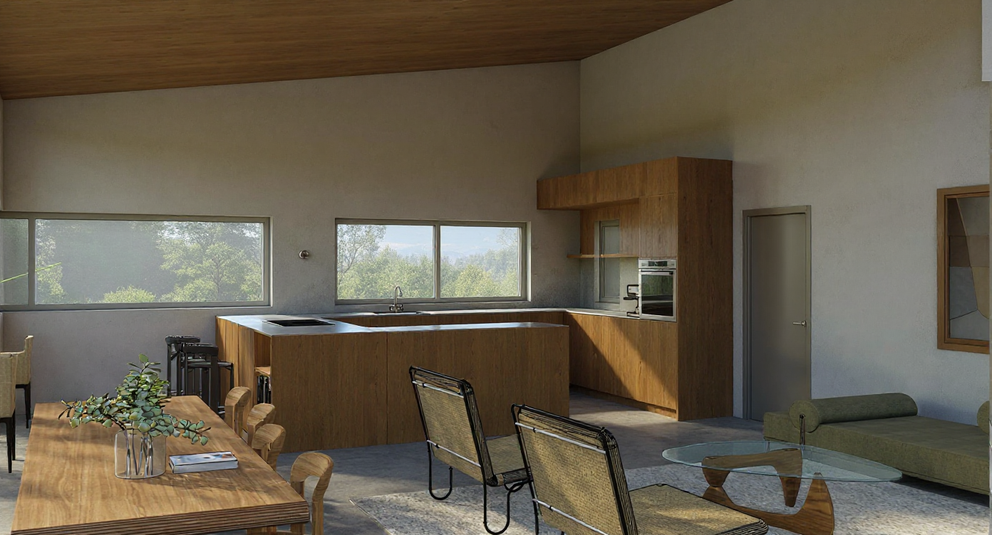 exterior shot cottage style house with a charming cozy atmosphere the exterior walls are painted in soft warm beige with white trims the roof is covered with dark gray shingles large inviting windows framed in white a welcoming front porch with rustic wooden seats surrounding the house are vibrant green lawns and lively flower beds filled with colorful blooms red roses yellow daisies and lavender the sky is clear with a bright cheerful blue and a gentle golden glow from the setting sun casts a warm light over the scene