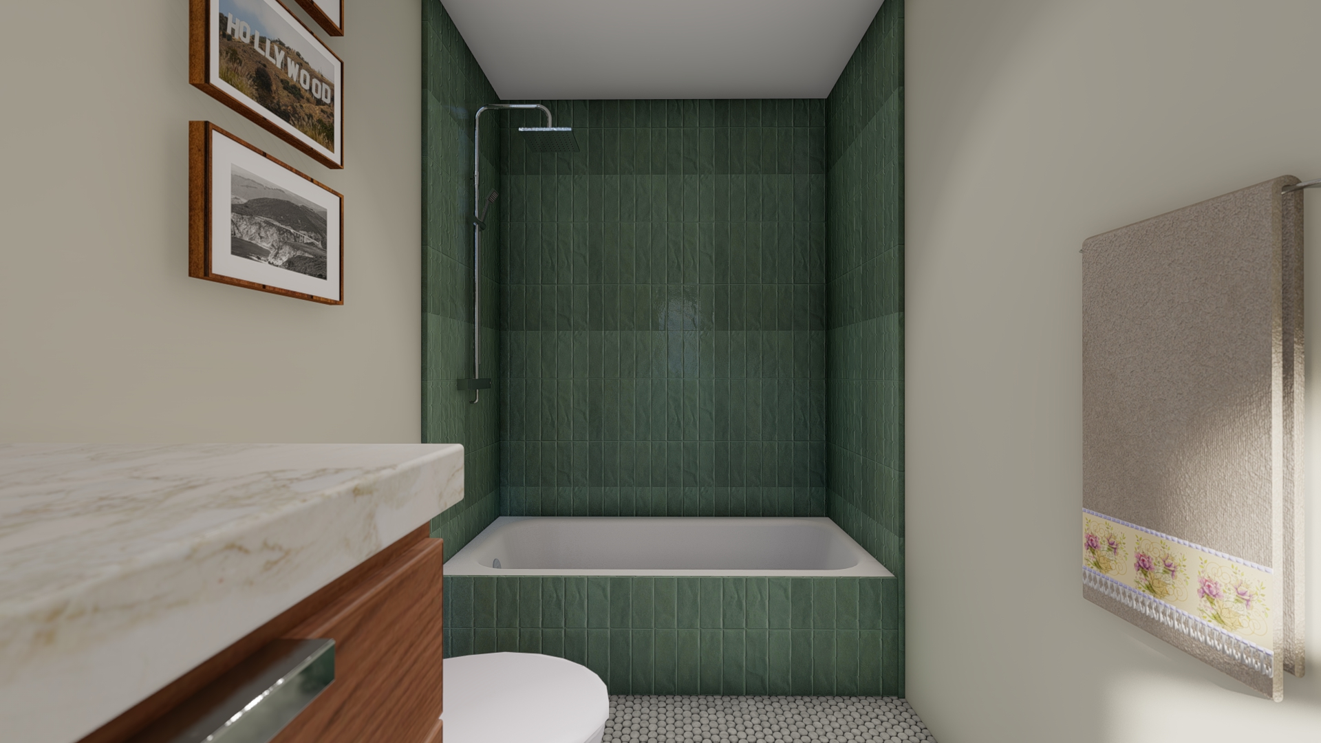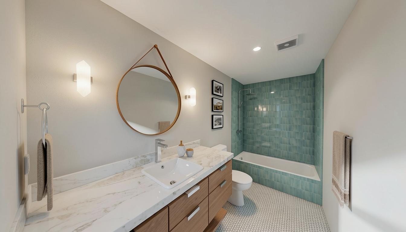 ultra realistic rendering of a modern bathroom maintain the exact layout camera angle proportions and object placement from the original photo do not modify architecture d cor or composition enhance realism through accurate materials textures lighting reflections and shadows