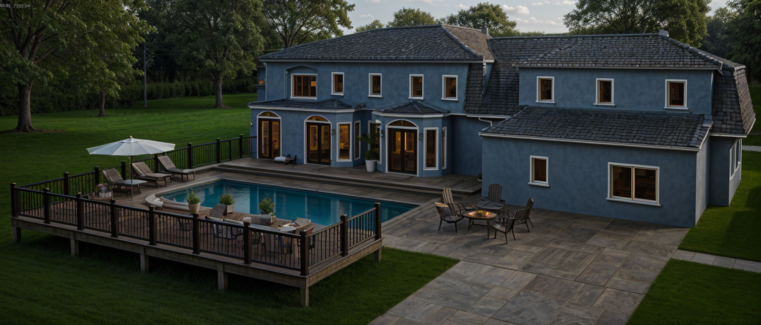 modernist exterior shot ultra realistic frontal render of a modern high standard house based strictly on the provided floor plan facade with smooth light stucco walls in the same colors of the project combined with vertical thin dark stone cladding pedra ferro large closed modern black gate aligned with garage windows with minimal design clean and flat with thin chrome details no frisos no divisions as smooth as possible balcony with seamless clear glass and chrome railing luxurious but minimal landscaping vivid green grass small ornamental plants straight frontal perspective high definition photorealistic daylight architecture