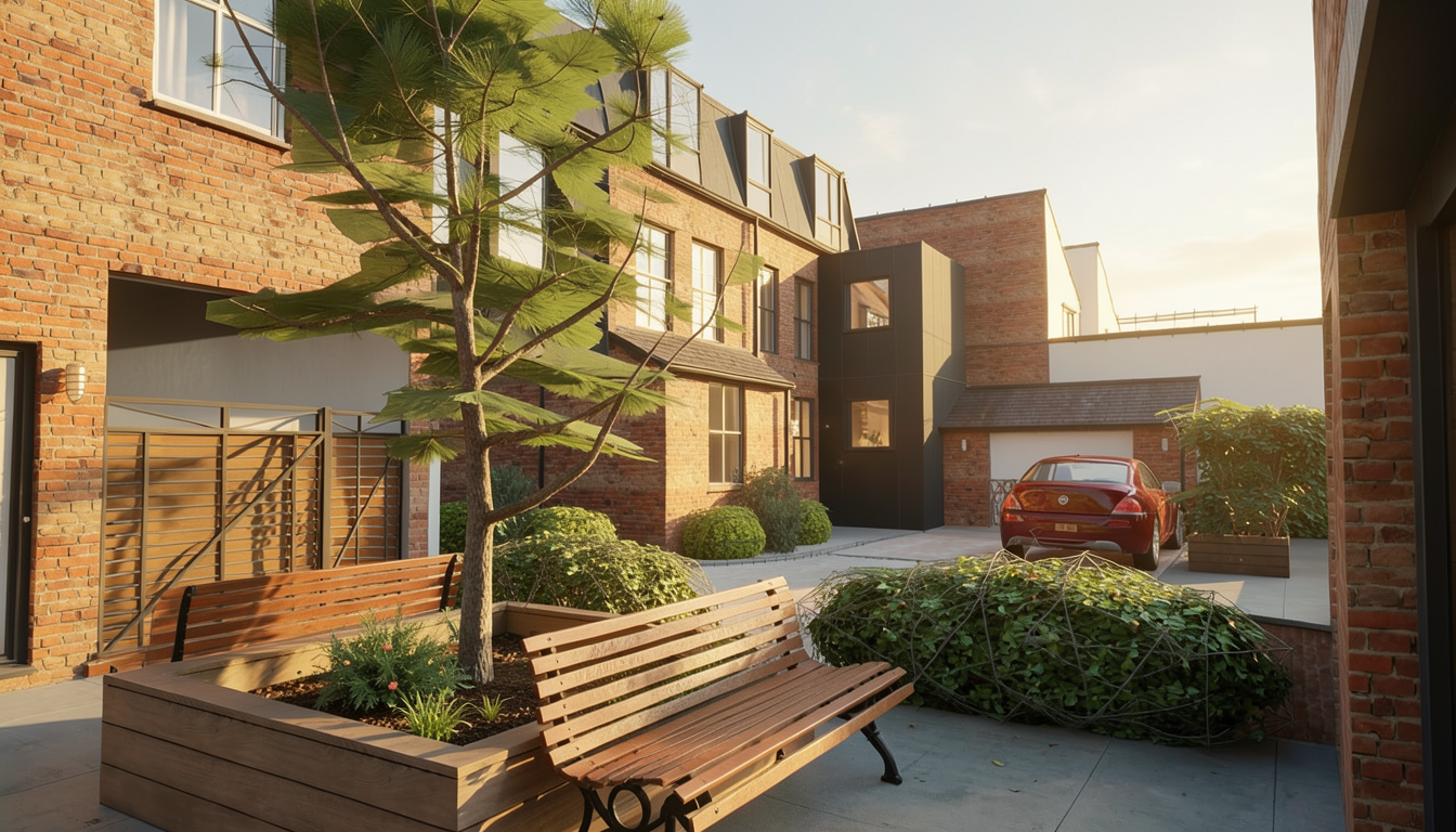 ultra realistic architectural visualization of a sketchup 3d model of a kiosk with a shelter awning preserve the exact geometry proportions and design of the model material and color specification middle part of the kiosk smooth plastic material pvc abs like slightly glossy physically based shading colored in ral 080 80 10 this color must be preserved exactly without any deviation in hue brightness or saturation top and bottom parts of the kiosk corrugated wavy metal sheets with realistic depth thickness and micro roughness coated painted in ral 7044 shelter awning corrugated metal material matching the same physical properties as the top bottom parts also in ral 7044 all specified ral colors must remain visually accurate and unchanged rendering style ultra photorealistic architectural visualization physically based rendering pbr accurate reflections shadows and global illumination high resolution textures and fine surface detail realistic ambient occlusion natural daylight with physically correct lighting environment realistic outdoor urban setting neutral ground such as pavement or concrete clean non distracting surroundings background elements rendered normally with standard realistic materials and colors camera eye level perspective focal length around 35 50mm equivalent composition focused on the kiosk and shelter important constraints strictly preserve the exact ral colors for the kiosk and shelter elements do not alter reinterpret or shift these colors in any way the rest of the scene environment ground background should be rendered naturally and realistically without strict color constraints no stylization fully photorealistic architectural render