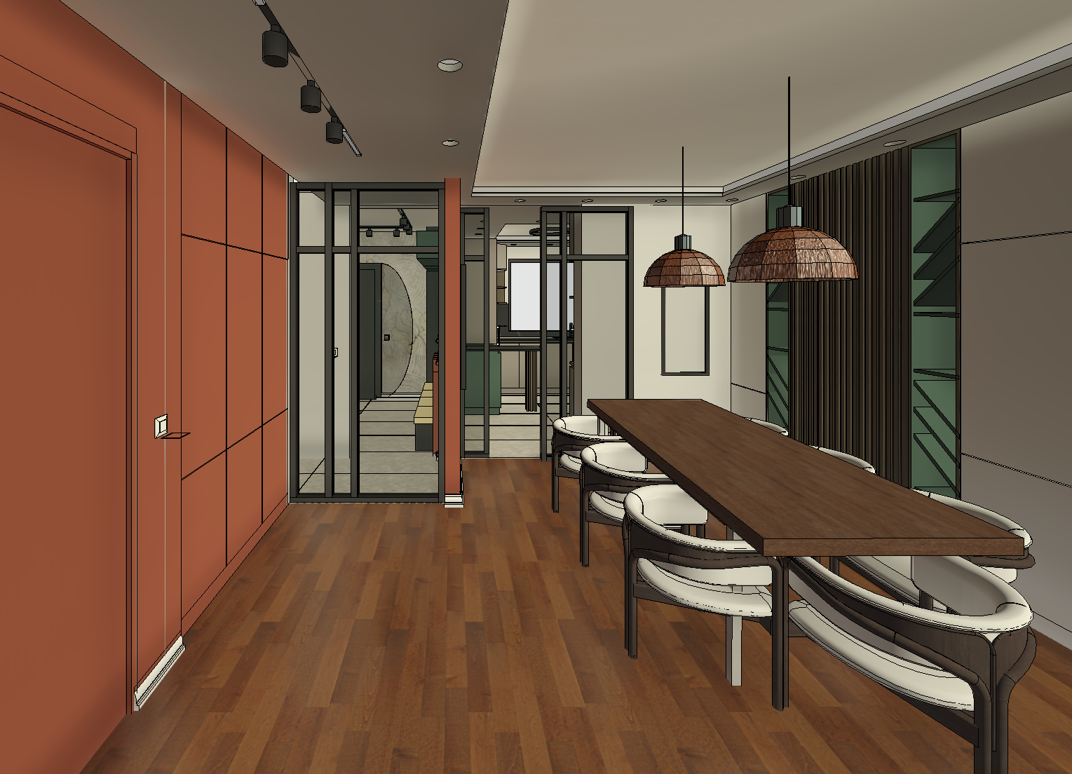 do not change the geometry and colors and materials the sun light comes from the bottom and from the lights on the roof