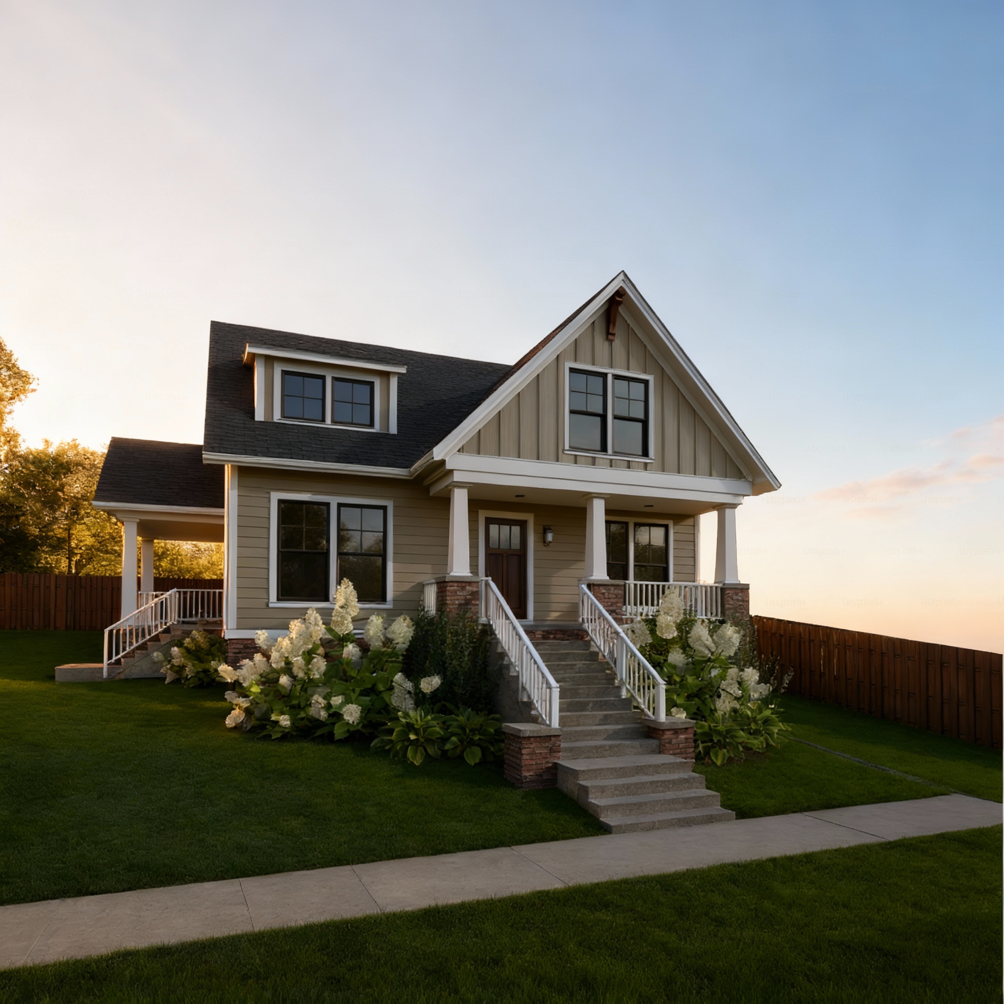 lot of reflects and sun light the sun illuminates the facade that we see some trees and a street of marseille in the backgroung facade more in the light more reflect all is painted no stone the fence call is beige like the extension sun set conserve my point of view