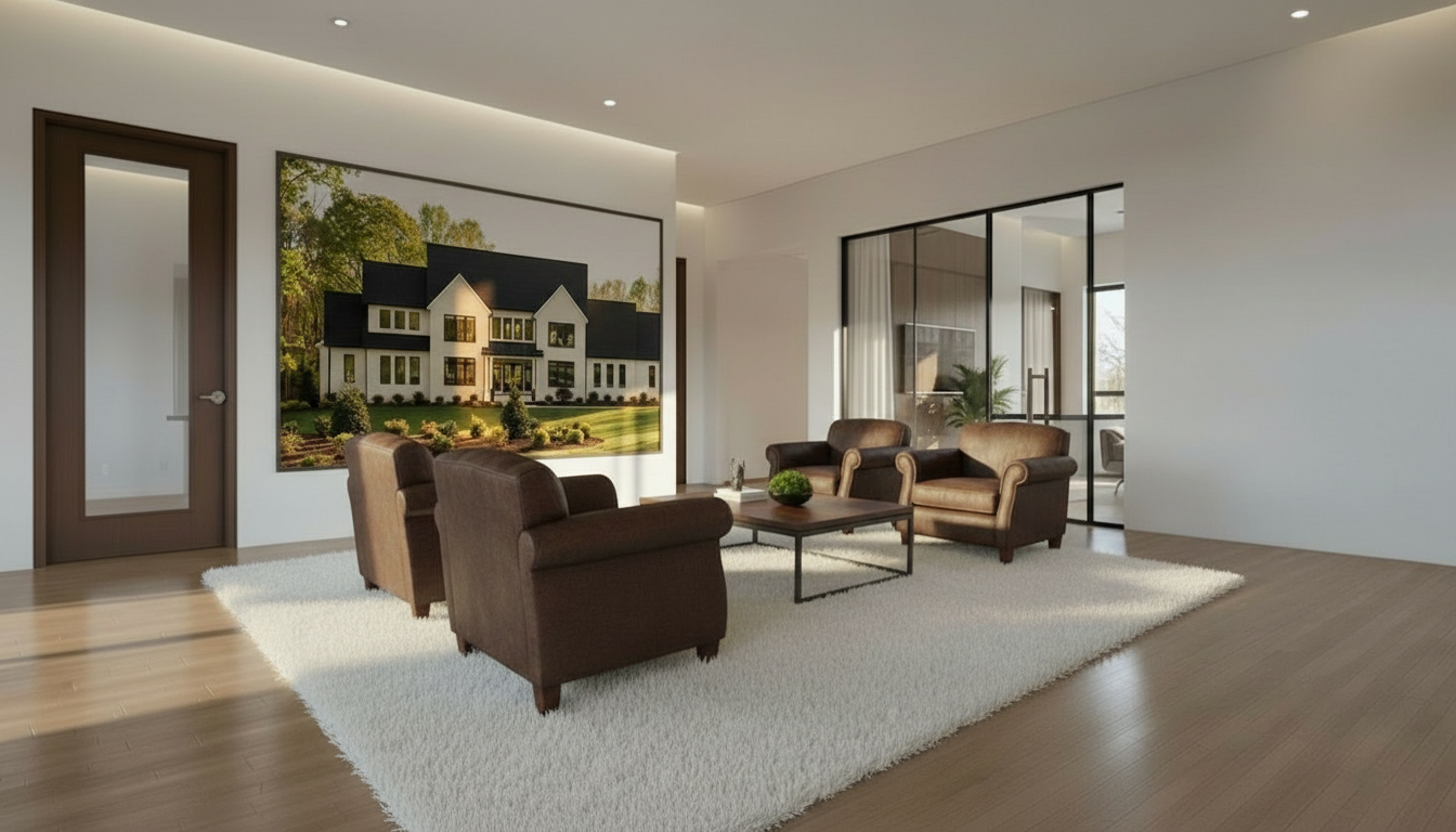 alvar aalto interior shot create a serene work place desk with a professionally designed and built desk top the front of it being oak whereas the rest of the desk is white beyond the window is leafless large oak trees the window is allowing some natural light on a cloudy day i need to keep the corner wall to the left and make the image show how it s getting built inside a small little nook architecture
