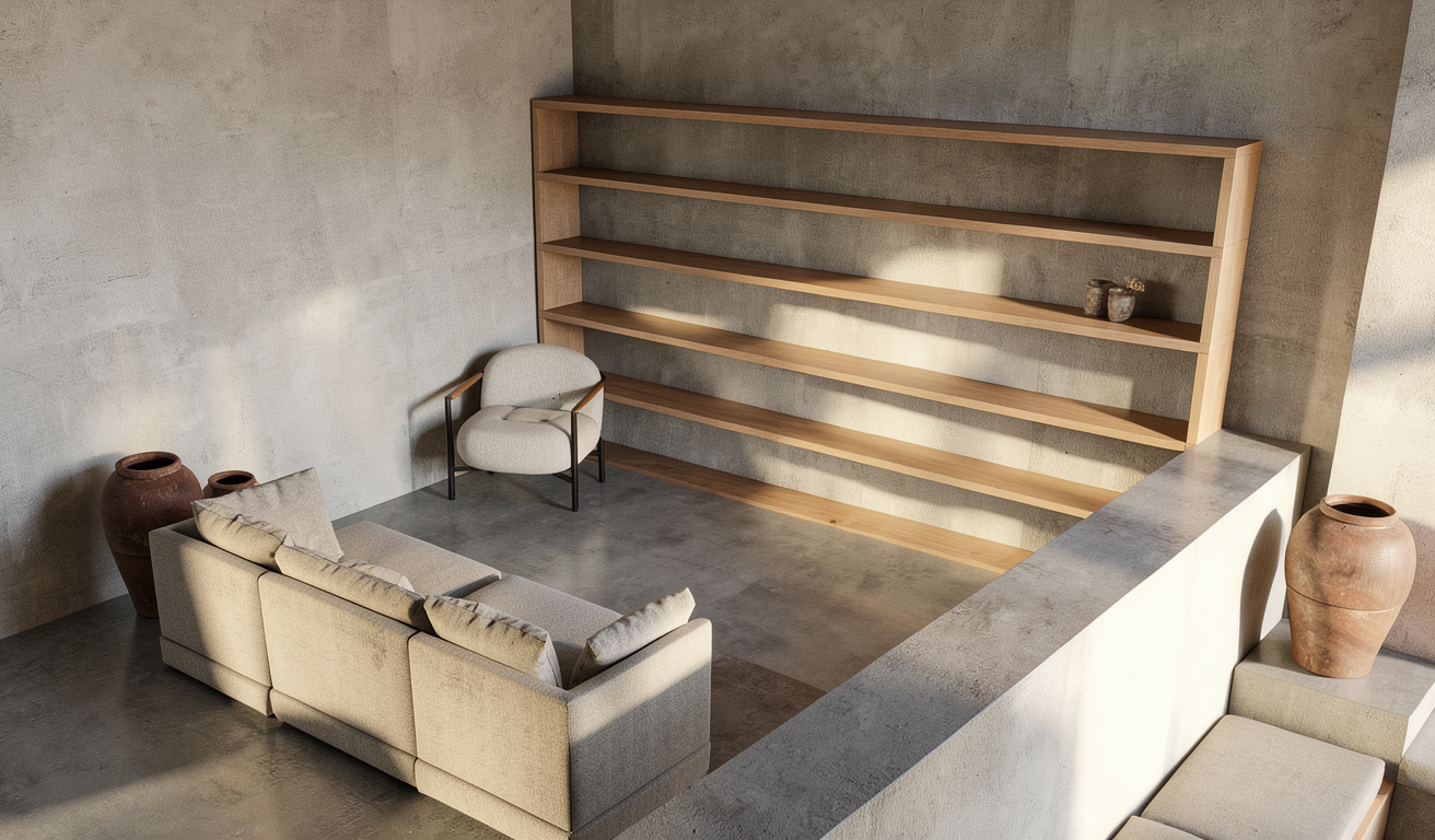 haz la estanter a de obra efecto microcemento incorporando led en todas las baldas