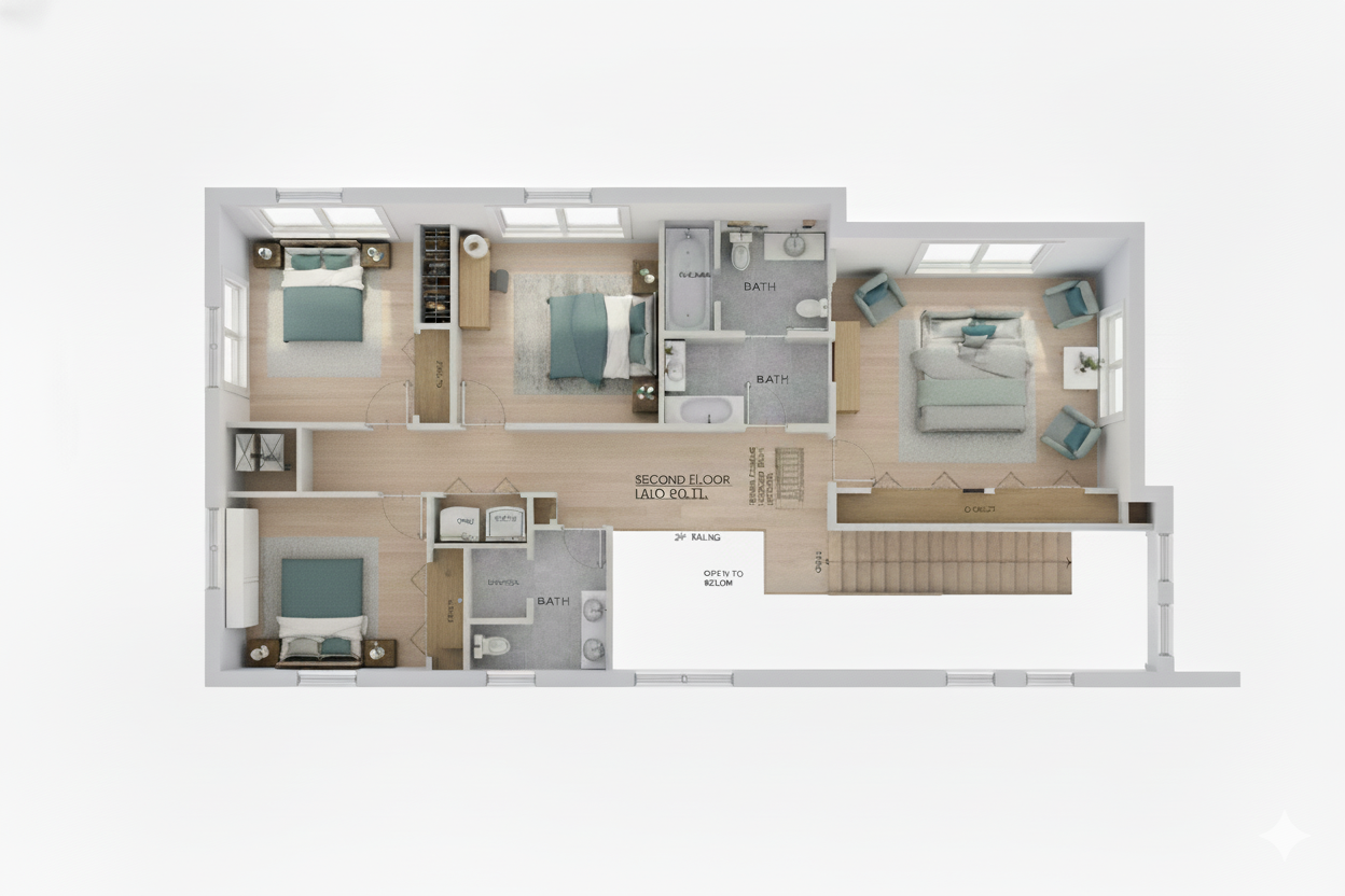 increse realism and keep the lauout surrounding whit replace one bath by wic and keep every thing else as is