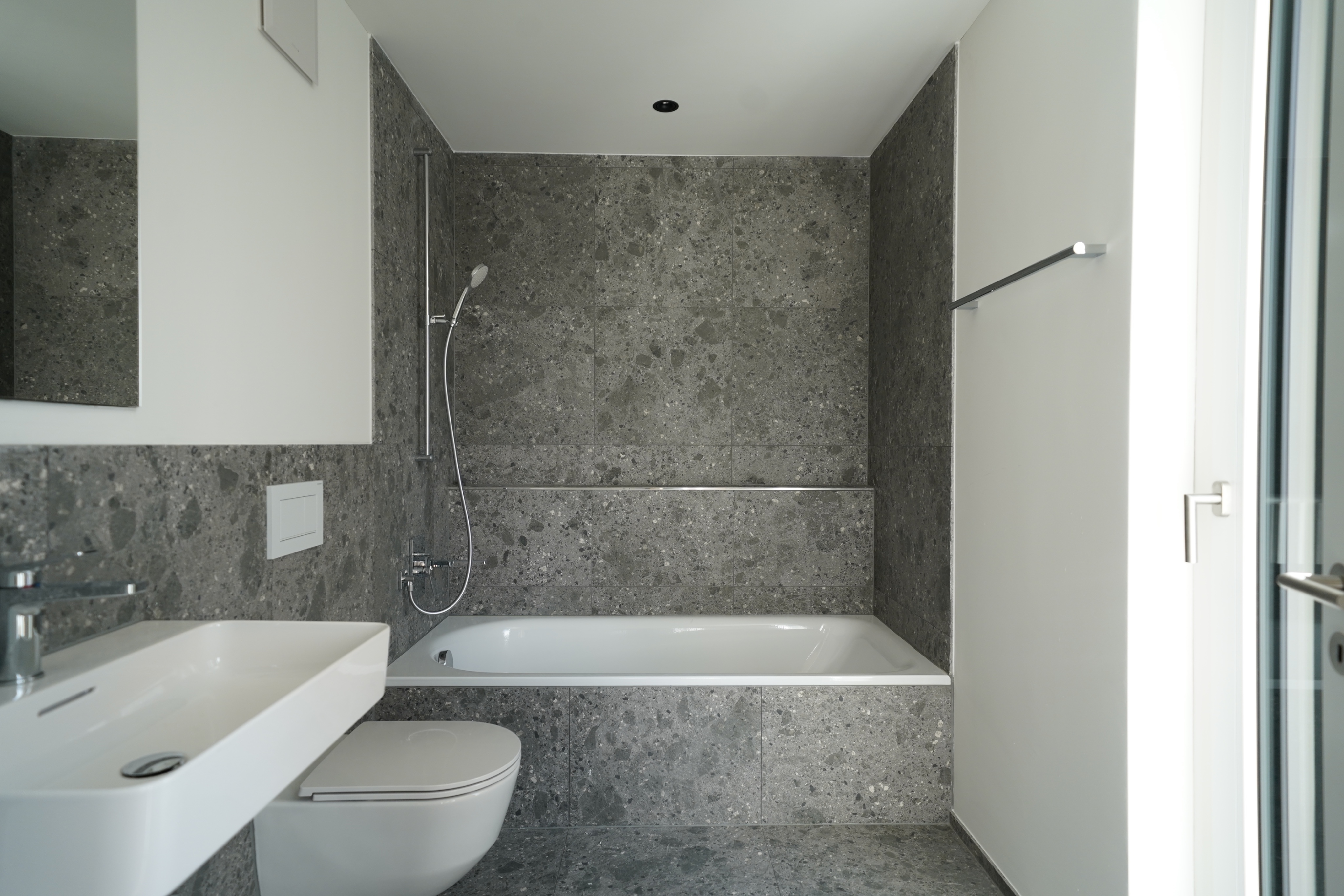 perspective shot enhance architectural interior photo strictly preserve original design materials and layout no alterations only technical corrections allow precise perspective correction and vertical alignment straighten lines reduce wide angle distortion slightly zoom in for a more natural focal length reduce stretched foreground elements sink compress depth for realistic proportions optimize exposure recover highlights balance window light reduce warm color cast neutral grey tones clean soft architectural lighting high detail professional real estate photography look architecture