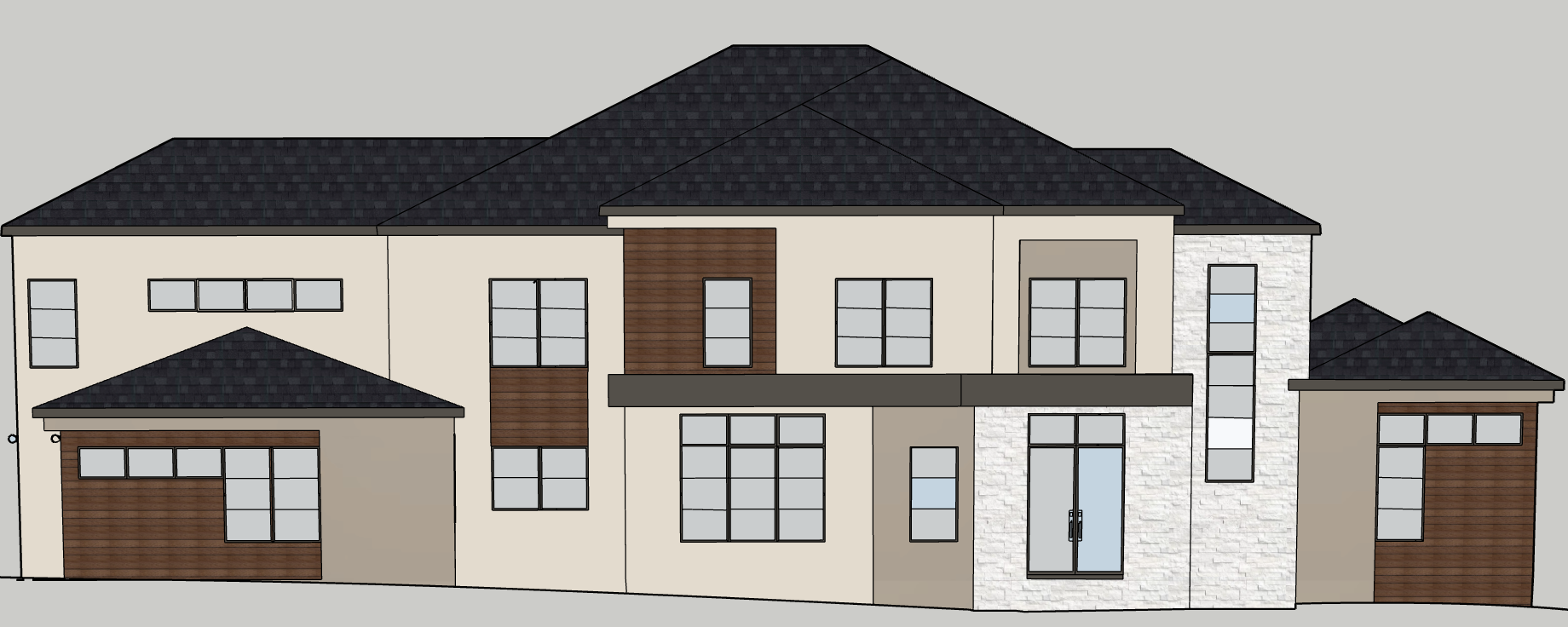 do not change any materials do not move any windows doors or rooflines do not change any colors materials or finishes except make the beam above the entry door and the window sill dark grey