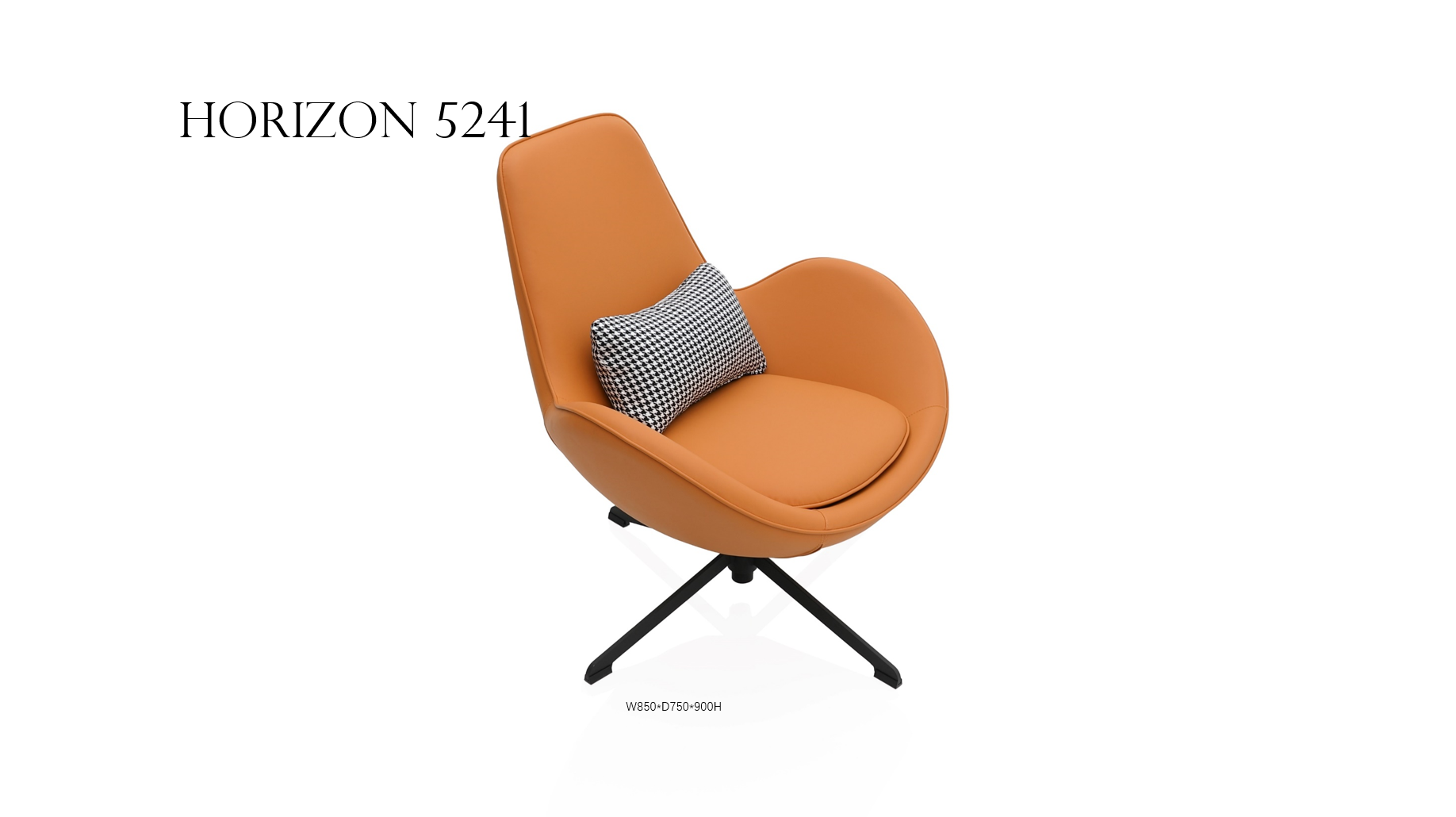 create a beautifully rendered image of a modern sleek chair with a warm caramel leather texture the chair should have a contemporary design featuring smooth curves and a minimalistic black metal base accent it with a small cushion in a black and white houndstooth pattern the atmosphere should be cozy and inviting with soft ambient lighting that highlights the chair s rich textures and elegant form