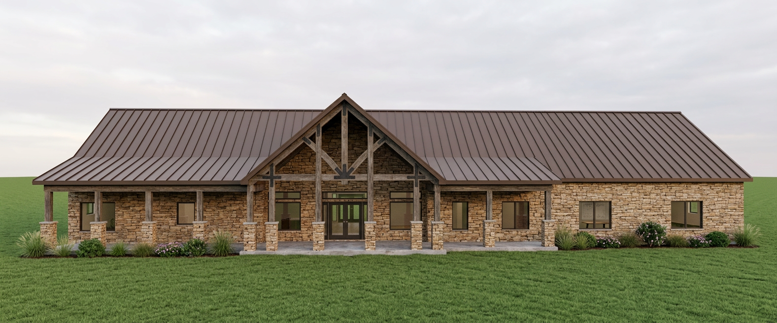 generate beautiful elevations renders with light inside with brown light stucco on front walls and brown tile roof