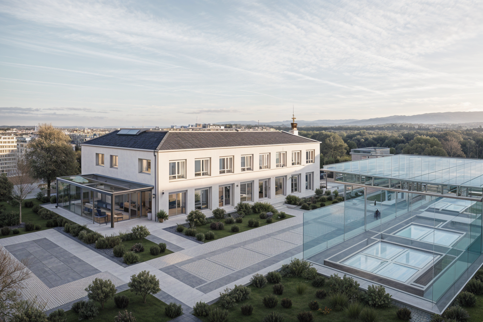 minimalism exterior shot night exterior lighting with upward facing floodlights night atmosphere with rain access area from the middle with interior lighting futuristic lit parking lot overall atmosphere is quite bright architecture