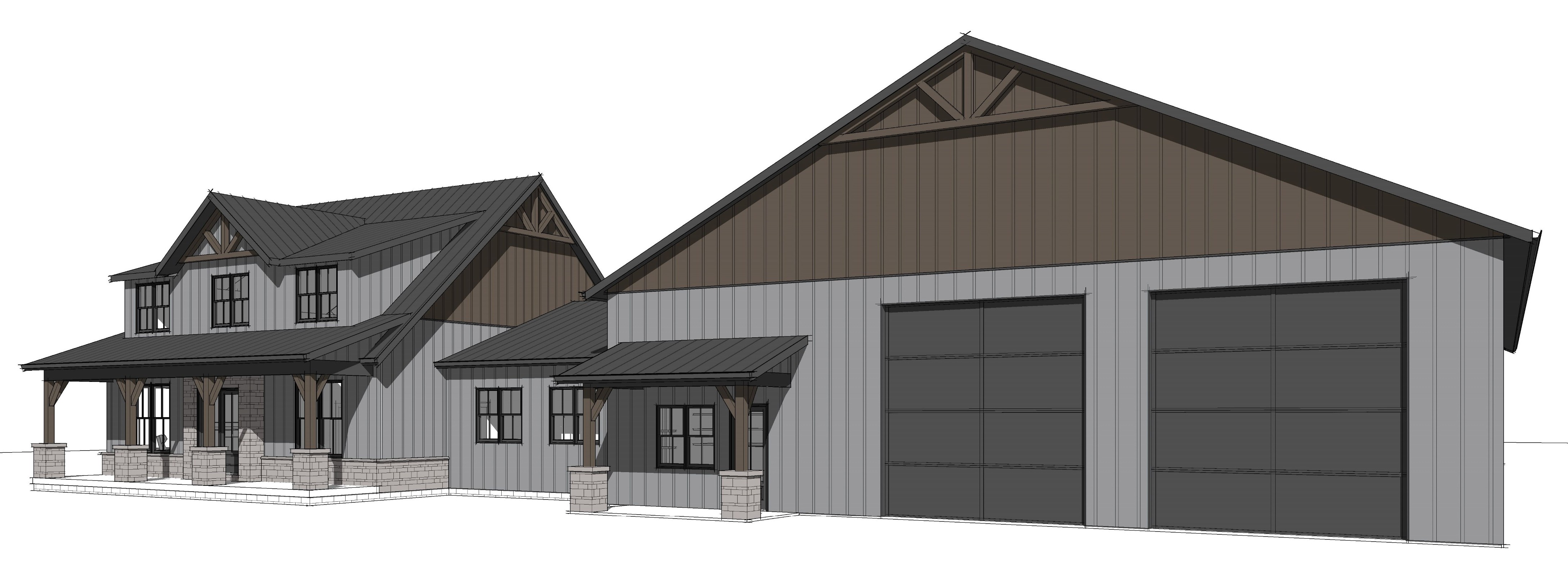 grey siding is corrugated metal brown siding in upper gables is a vertical barnwood add basic landscaping and gravel drive