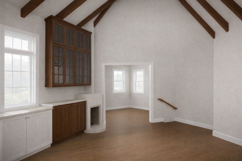 lower the bottom of the upper cabinets vertically on the wall