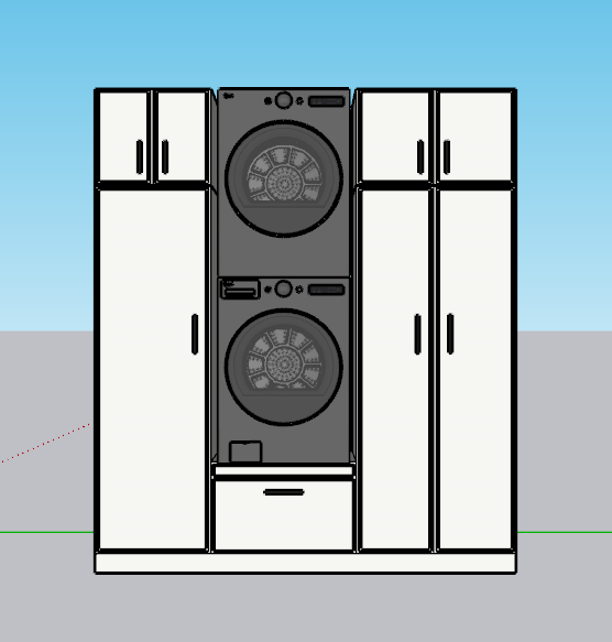the cabinets should be shaker style cabinets please make the floor rubber floor tiles such as the ones used in gyms please place against a wall there should be no windows in this room as it is technically inside of a garage