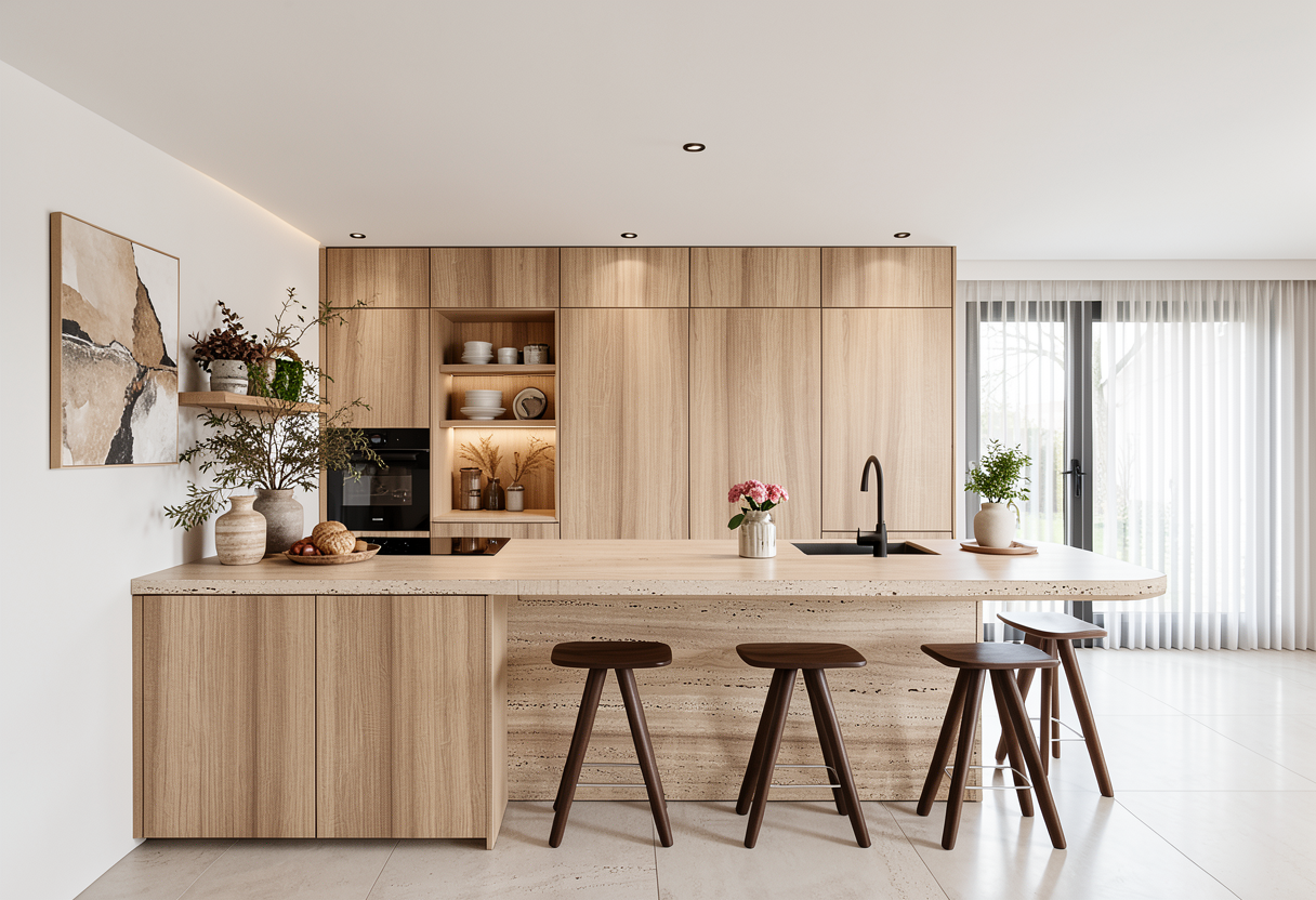 professional architectural photography of an upscale spanish tapas restaurant banquette seating area eye level perspective angled view along continuous banquette warm intimate hospitality atmosphere custom upholstered banquette in rich camel brown leather with realistic natural grain subtle creases stitching detail and slight tonal variation between panels softly worn leather texture with authentic reflectivity decorative upholstered top rail in marbled fabric with intricate pattern realistic woven textile texture and depth deep burgundy painted plaster wall with subtle hand applied finish variation matte sheen and realistic wall texture mounted polished brass bull head ring hardware evenly spaced across wall highly reflective brass material with realistic highlights subtle patina and natural imperfections dark stained wood tables with visible wood grain slight wear at edges and soft satin finish sculptural pedestal and caf tables with realistic metal patina oxidation and material variation fully upholstered dining chairs in cream boucle fabric with highly detailed woven texture soft fibers subtle shadowing and realistic compression at seat cushion exposed brick wall with authentic mortar joints material variation and realistic depth dark flooring with subtle reflectivity and natural wear patterns warm ambient restaurant lighting soft directional lighting from above realistic shadow falloff indirect bounce light from surrounding materials natural light entering from window with realistic exposure balance shot on full frame camera 50mm lens shallow depth of field professional interior photography hdr ray tracing global illumination ambient occlusion physically accurate materials ultra photorealistic architectural digest style dezeen style luxury hospitality photography extremely realistic materials micro imperfections subtle wear natural variation 8k resolution floor is a dark crarcoalstained concrete the chairs are a tan textured fabric there is a soft amber sunset glow illuminating the room evenly light from the ceiling brightens the vibe