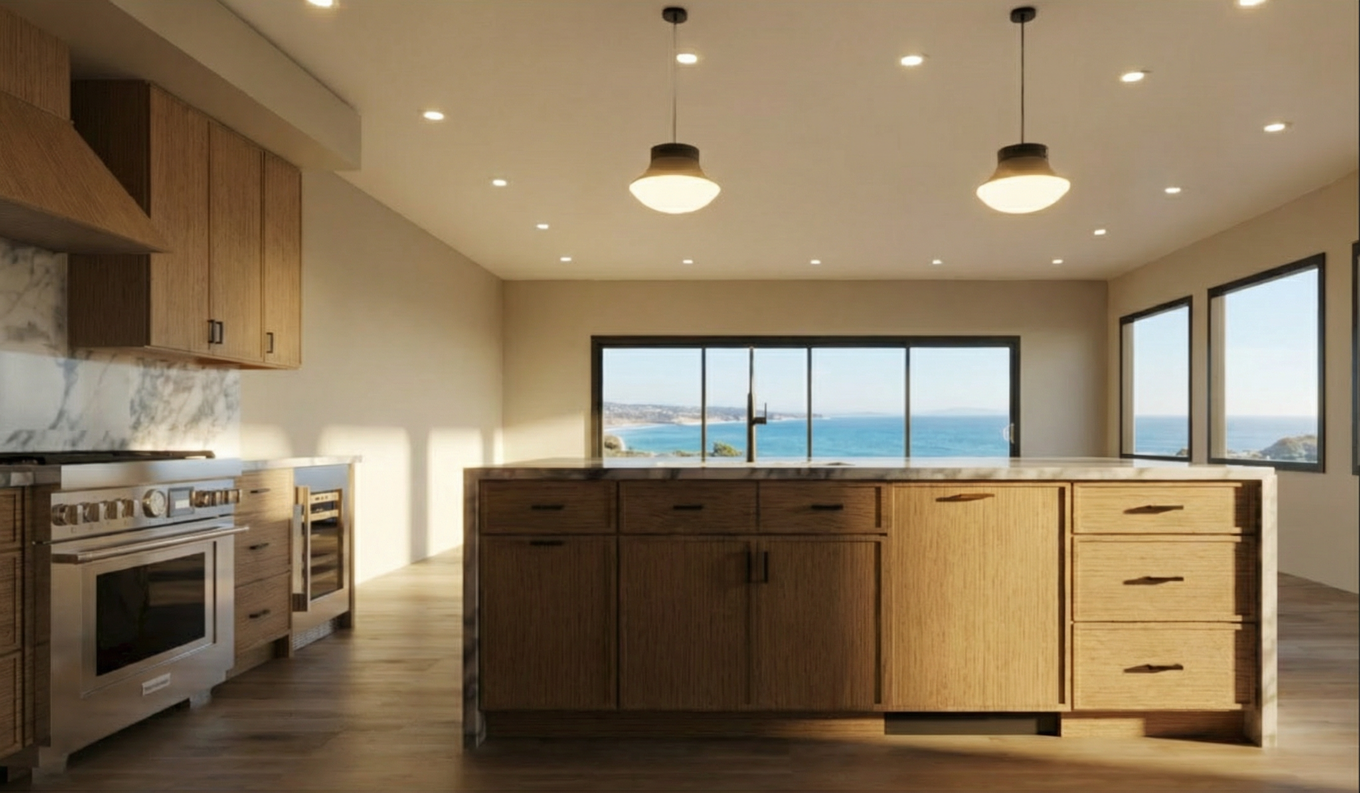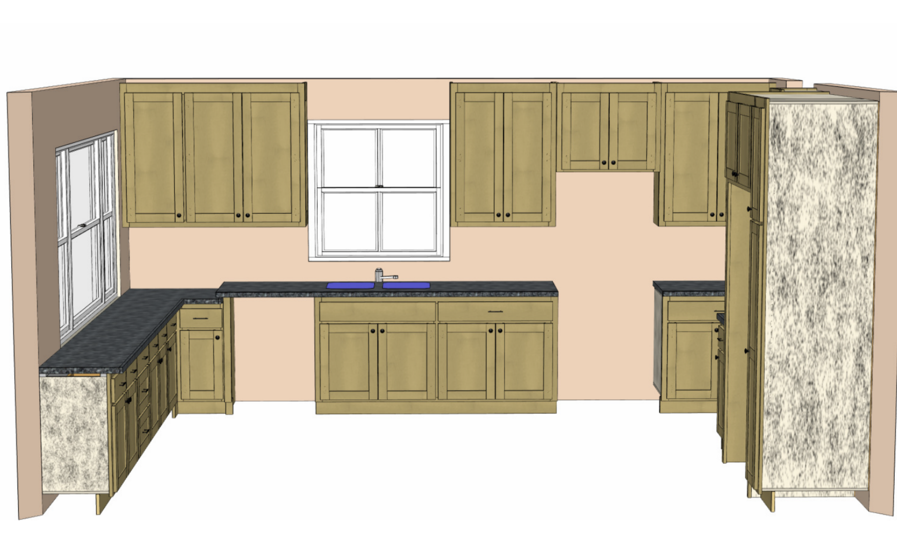 exterior shot add dishwasher in empty slot on left and oven on empty slot on right