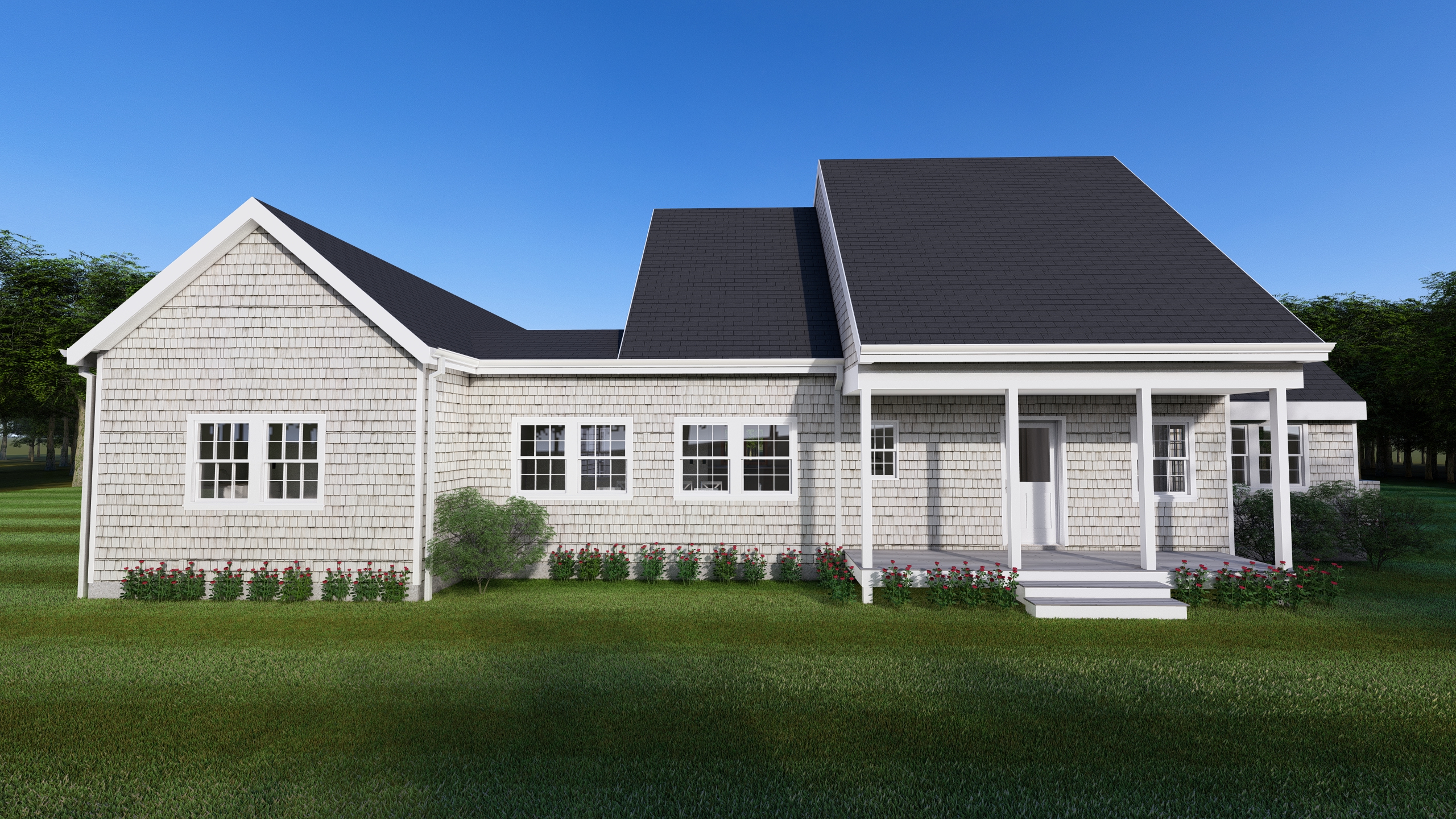 make this image more realistic with lighting and landscaping make the rendering look like a photograph