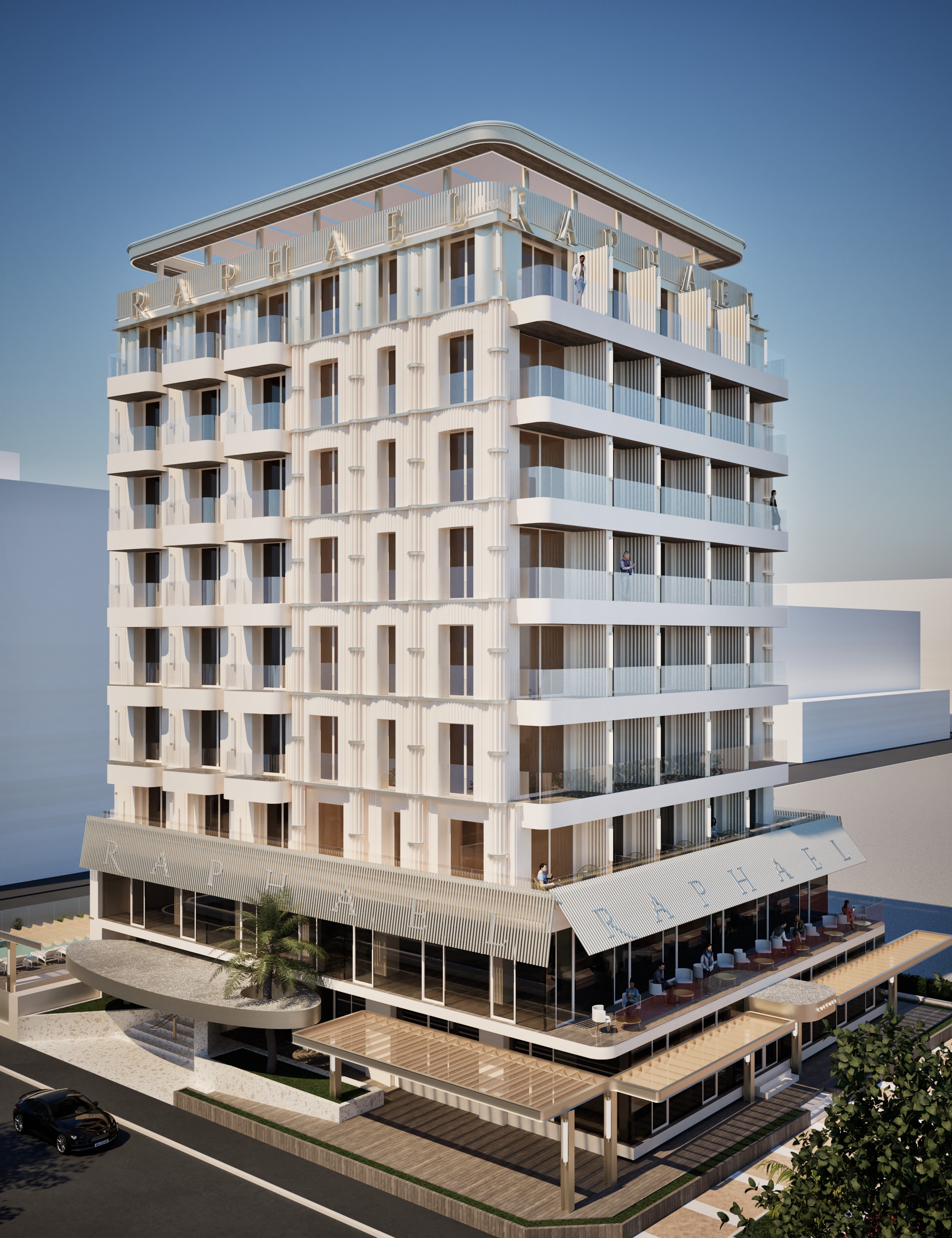 aggiungi le persone aggiungi il verde nelle fioriere e sopra la pensilina rotonda sopra l ingresso non mettere il verde nei balconi