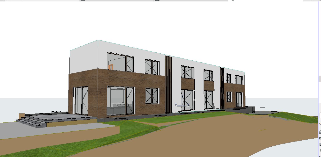 contemporary exterior shot in an australian rural setting at sunset with a lush green garden external colour pallette of white and soft grey architecture