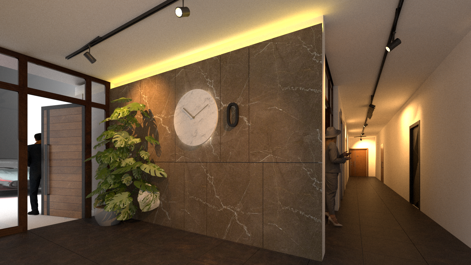 photorealistic high end rendering luxurious atmosphere motion blurren people