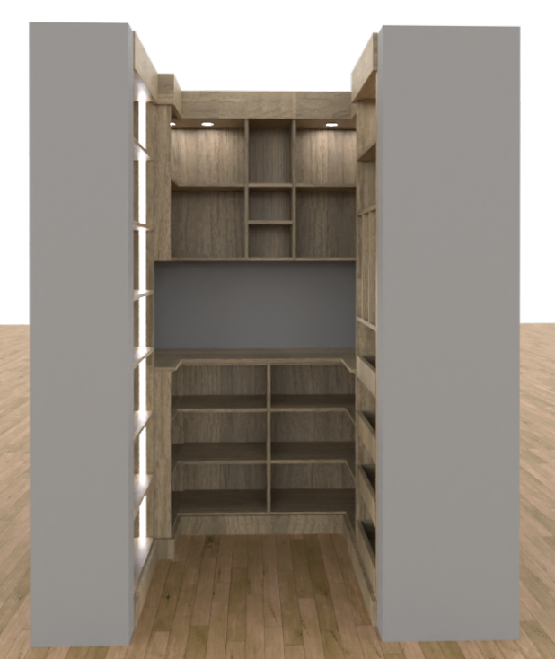 generate a realistic rendering of this pantry space do not change the textures furniture or anything else just enhance it and make it more realistic the lighting should be warm