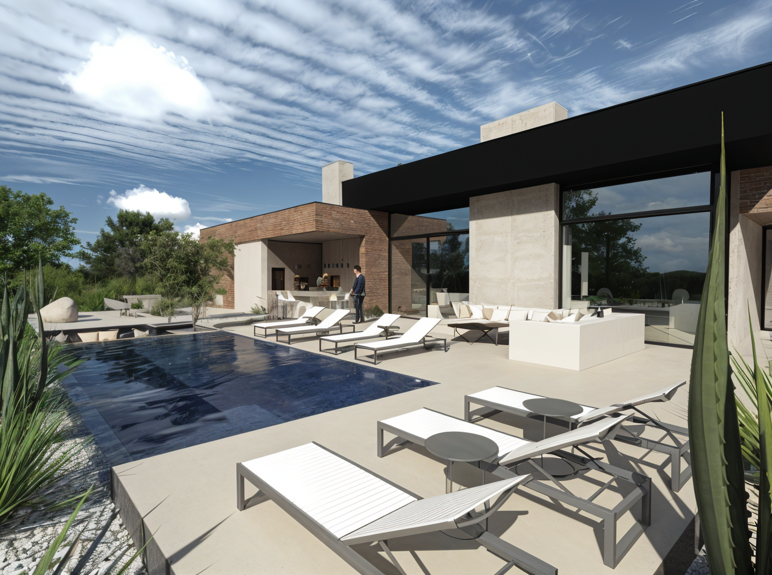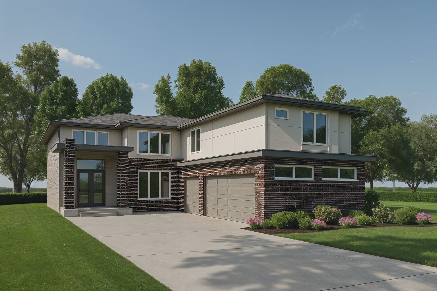 exterior shot make a rendering of a garage with a luxury car on the outside